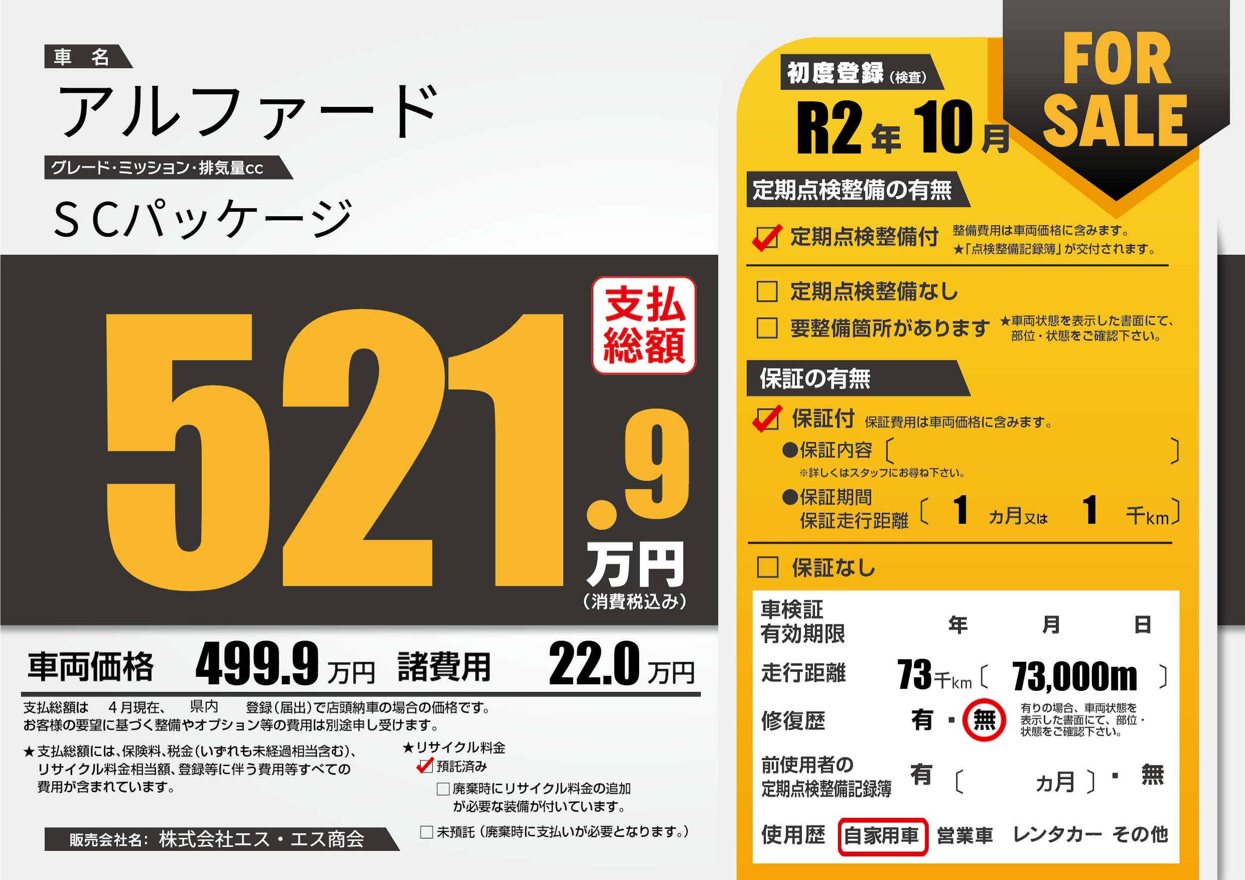 | 走行キロ | 7.3万km | 初年度登録 | R2年10月 |