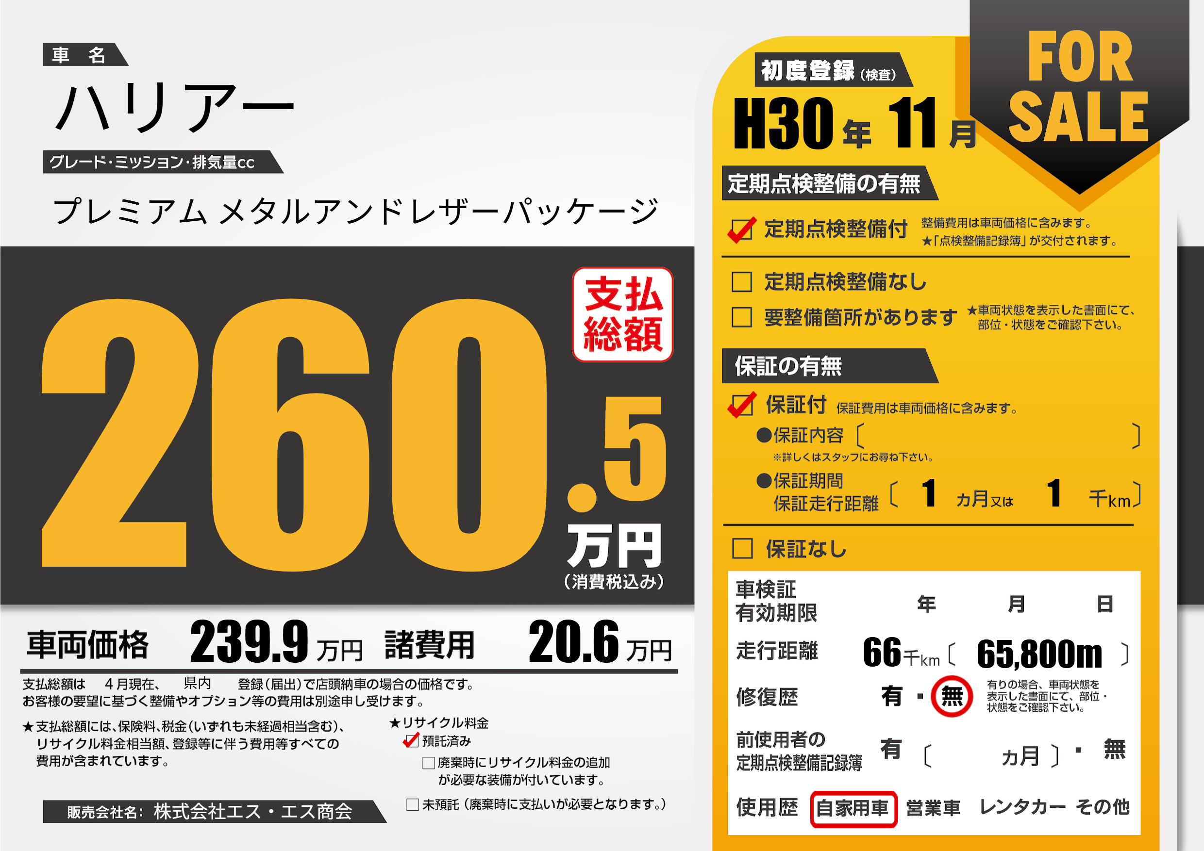 | 初年度登録 | H30年11月 | ||