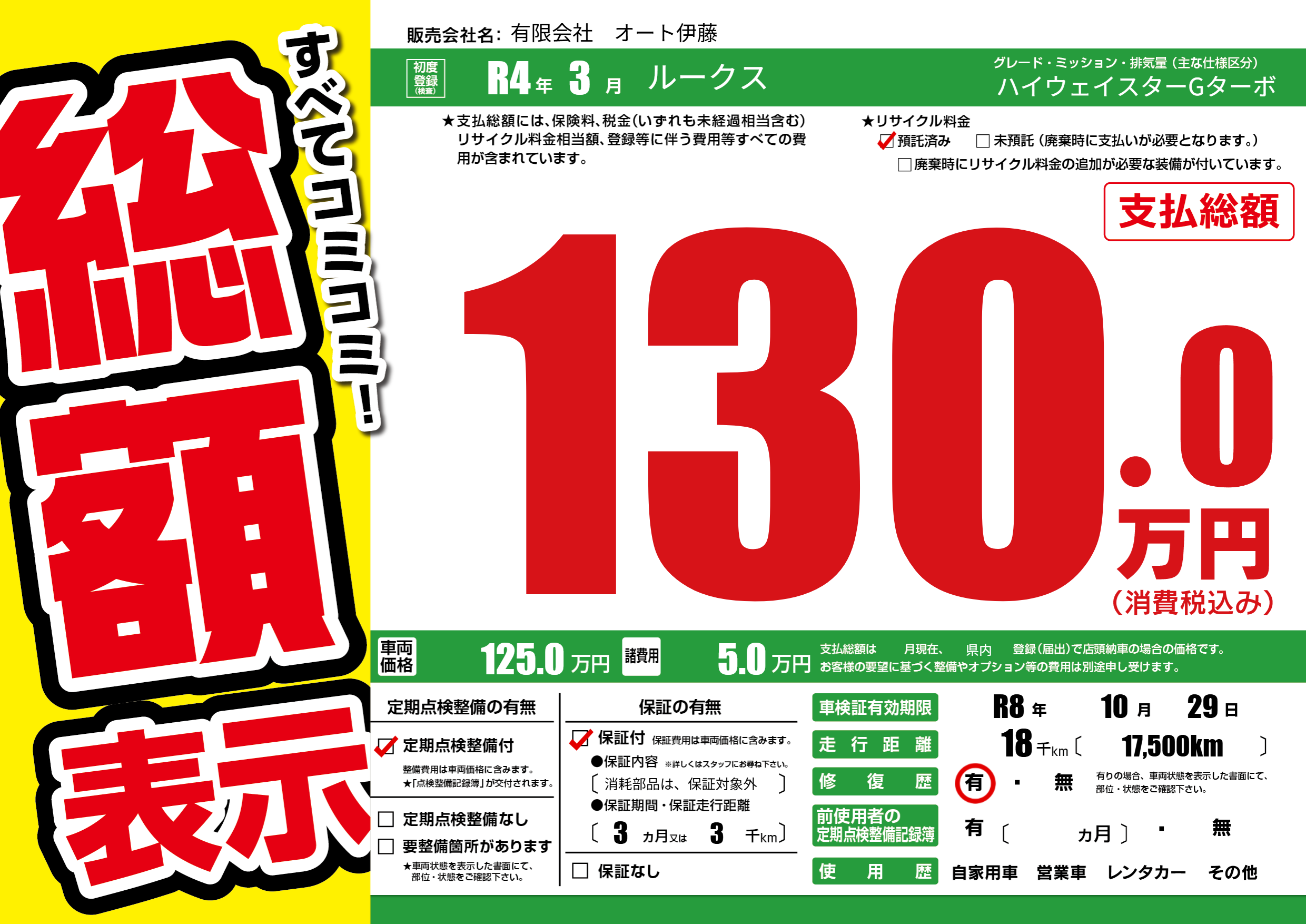 | 走行キロ | 1.8万km | 初年度登録 | R4年3月 |
