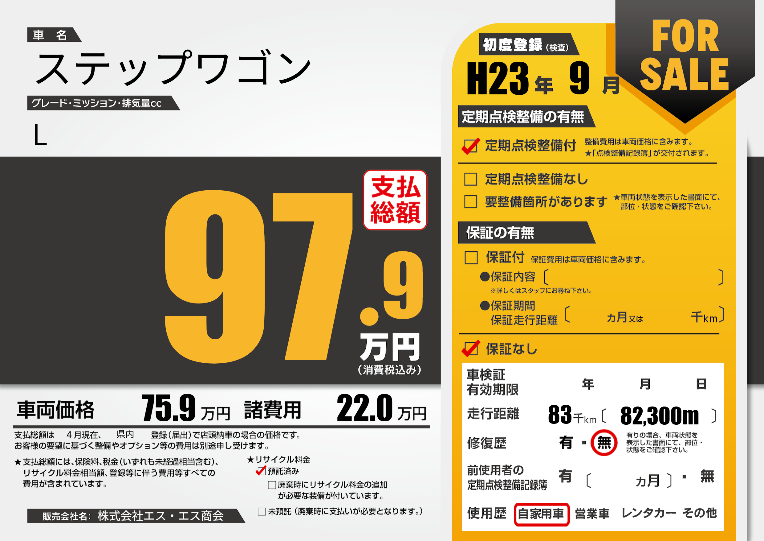 | 初年度登録 | H23年9月 | ||