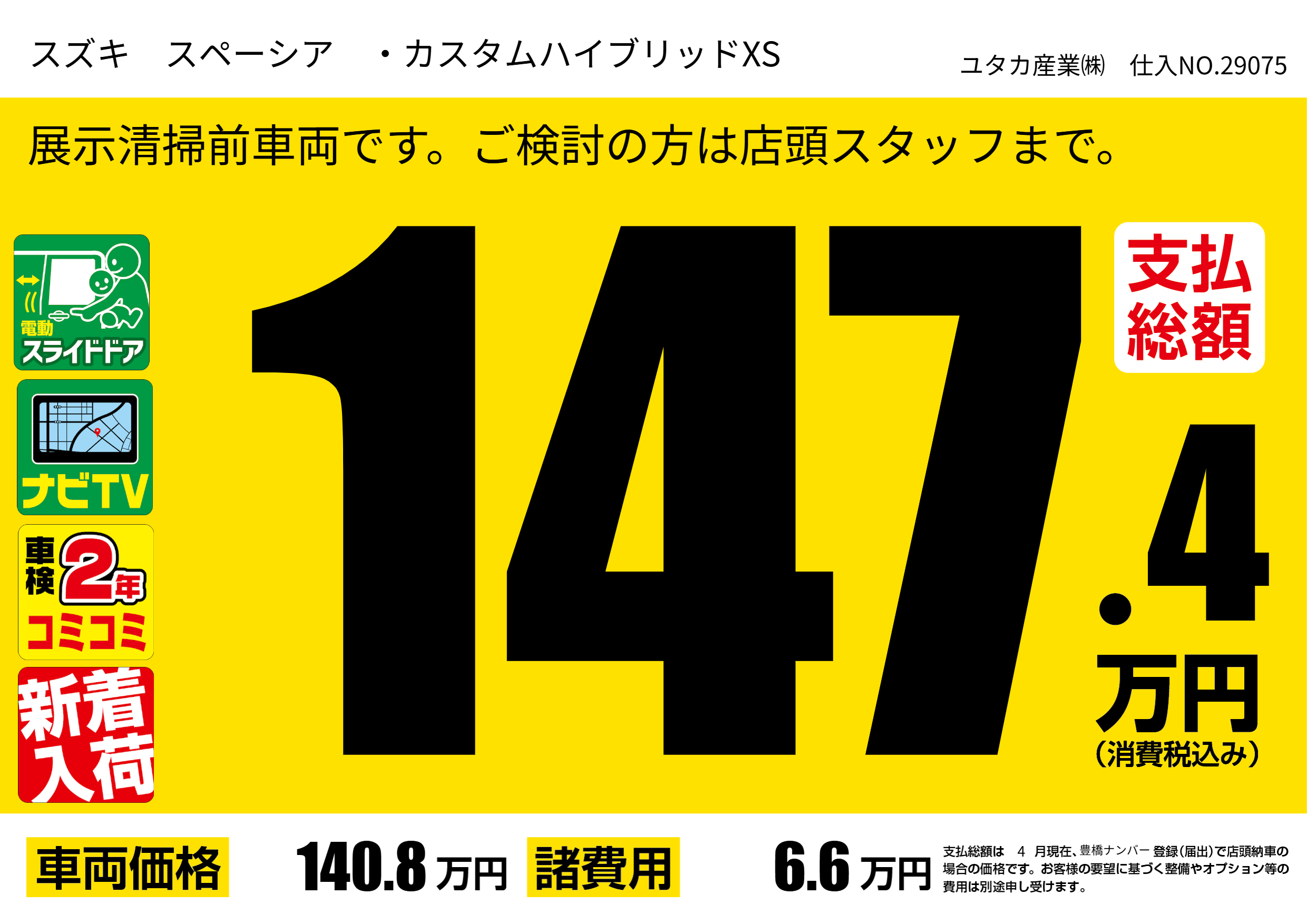 展示清掃前車両です。ご検討の方は店頭スタッフまで。 |