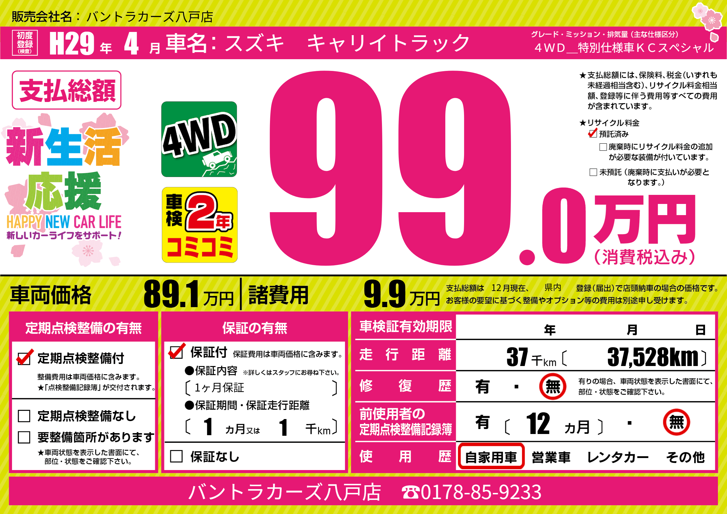 | 走行キロ | 3.7万km | 初年度登録 | H29年4月 |