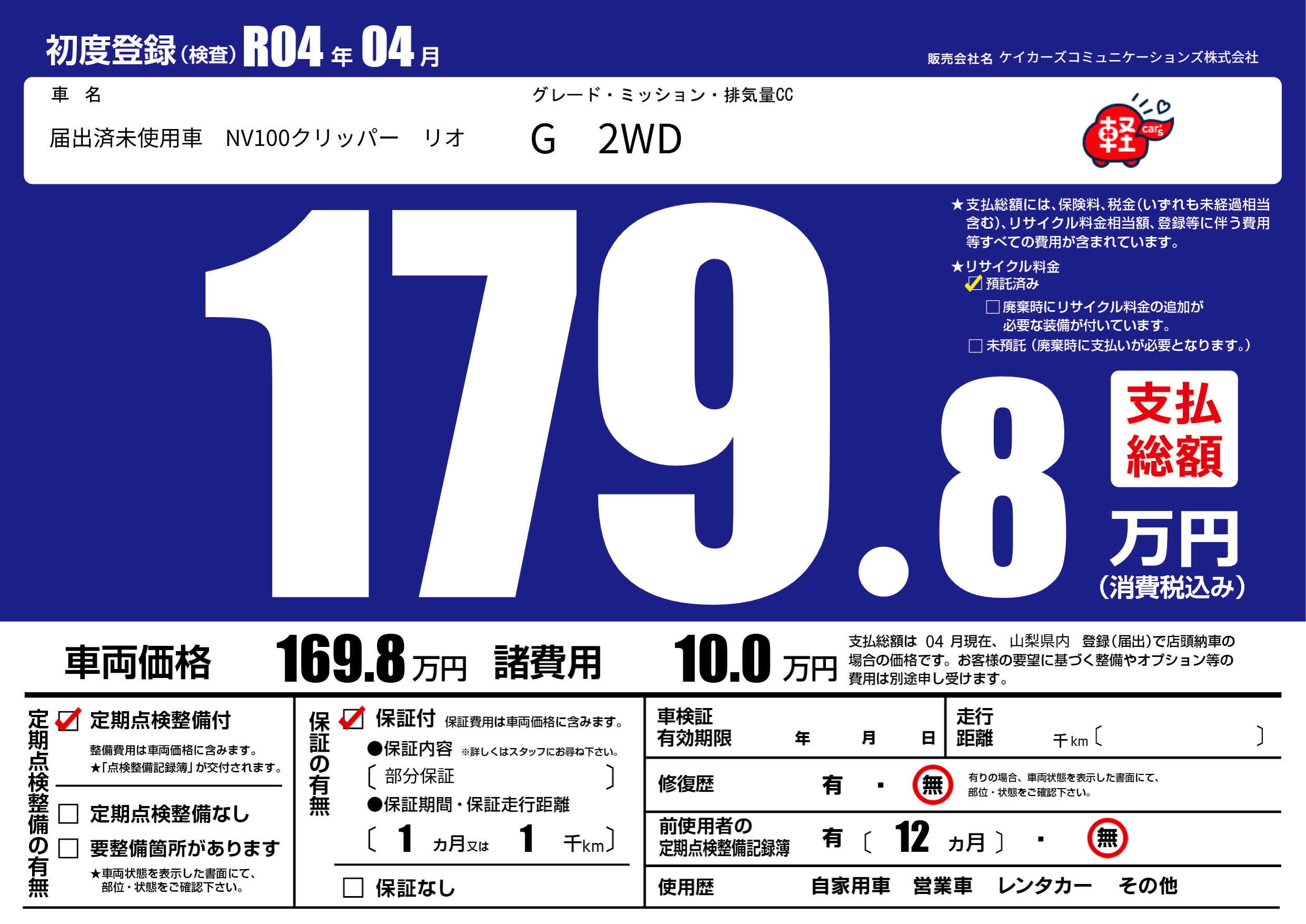 ケイカーズコミュニケーションズ株式会社 フラット7甲府昭和インターの展示車をすべて見る