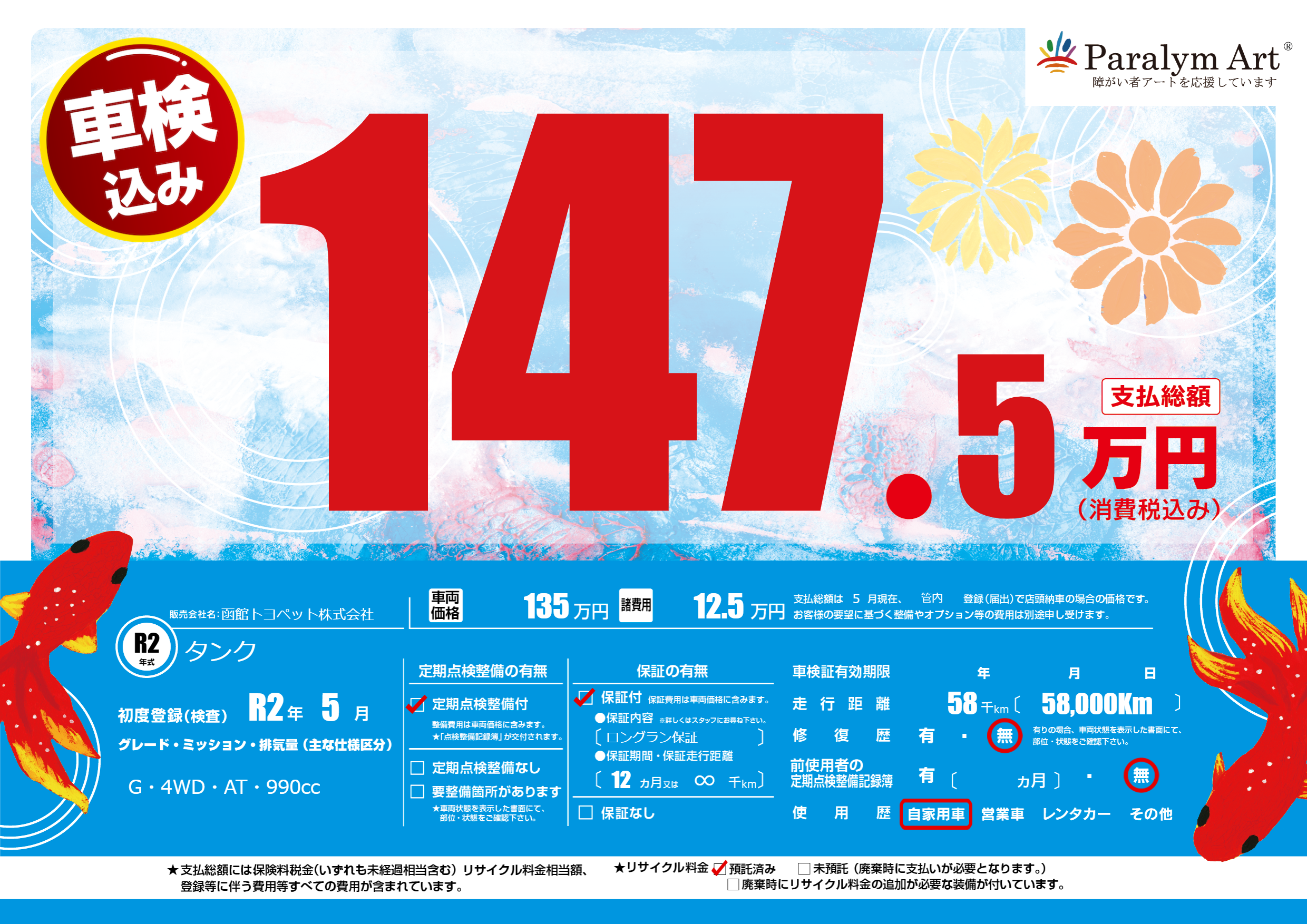 | 走行キロ | 5.8万km | 初年度登録 | R2年5月 |
