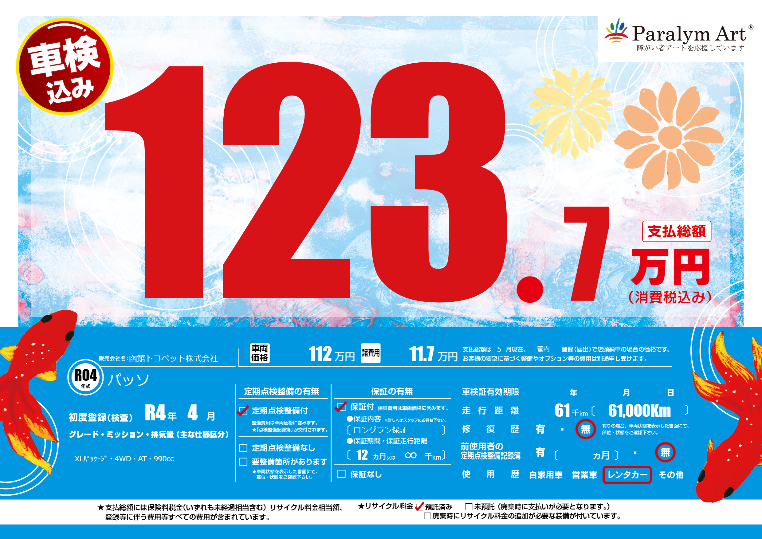 | 車名 | パッソ | グレード ミッション 排気量 |