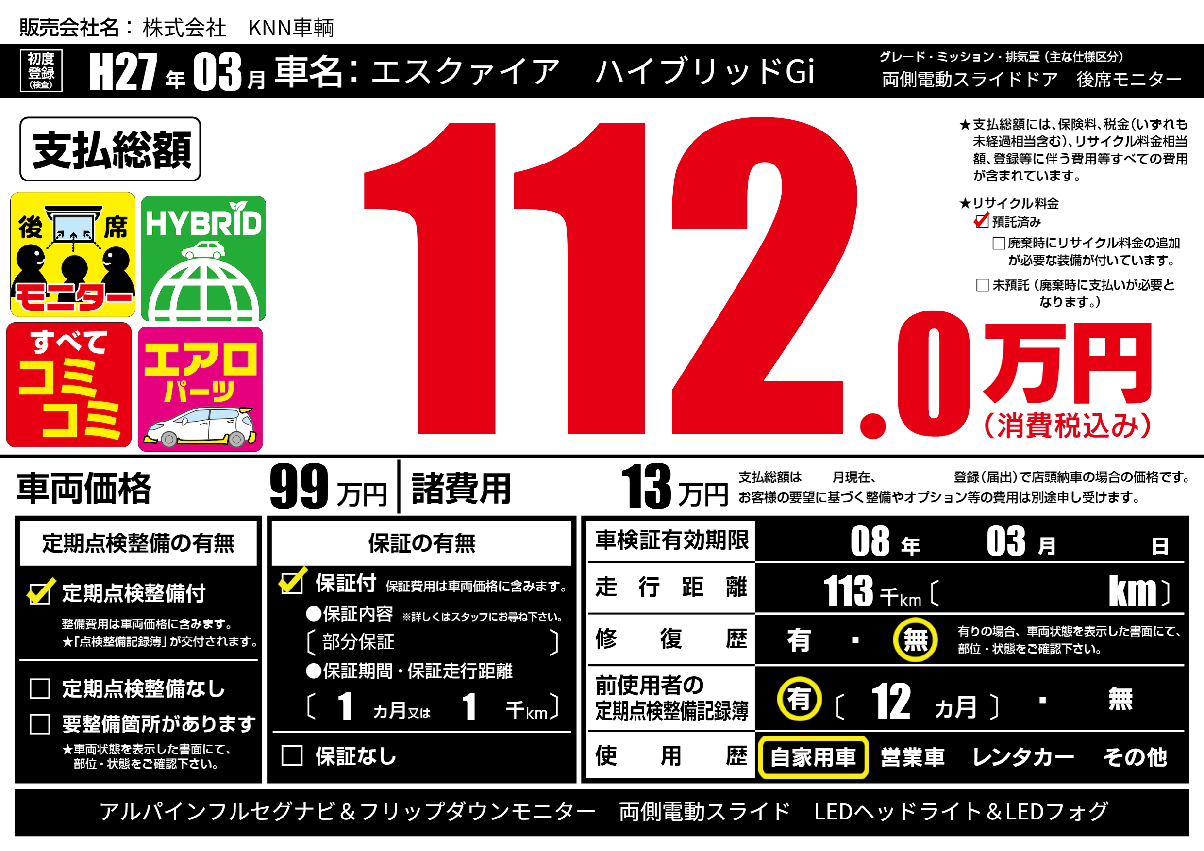 | 定期点検整備 | 定期点検整備あり | ||