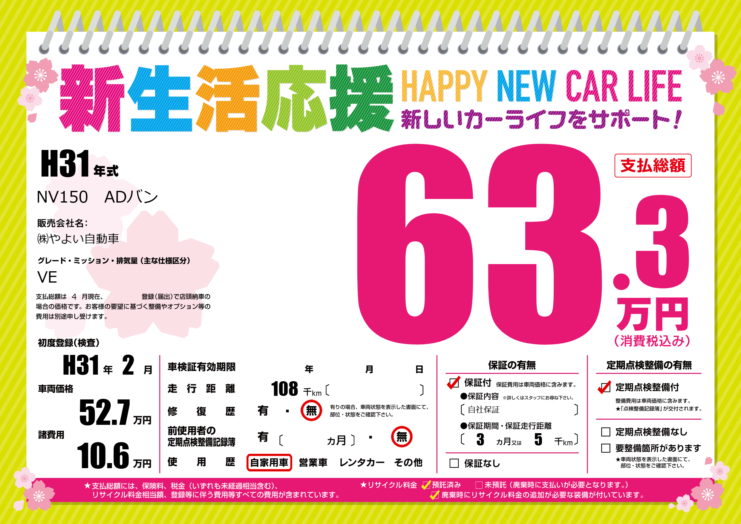 | 車名 | NV150 ADバン | グレード ミッション 排気量 |