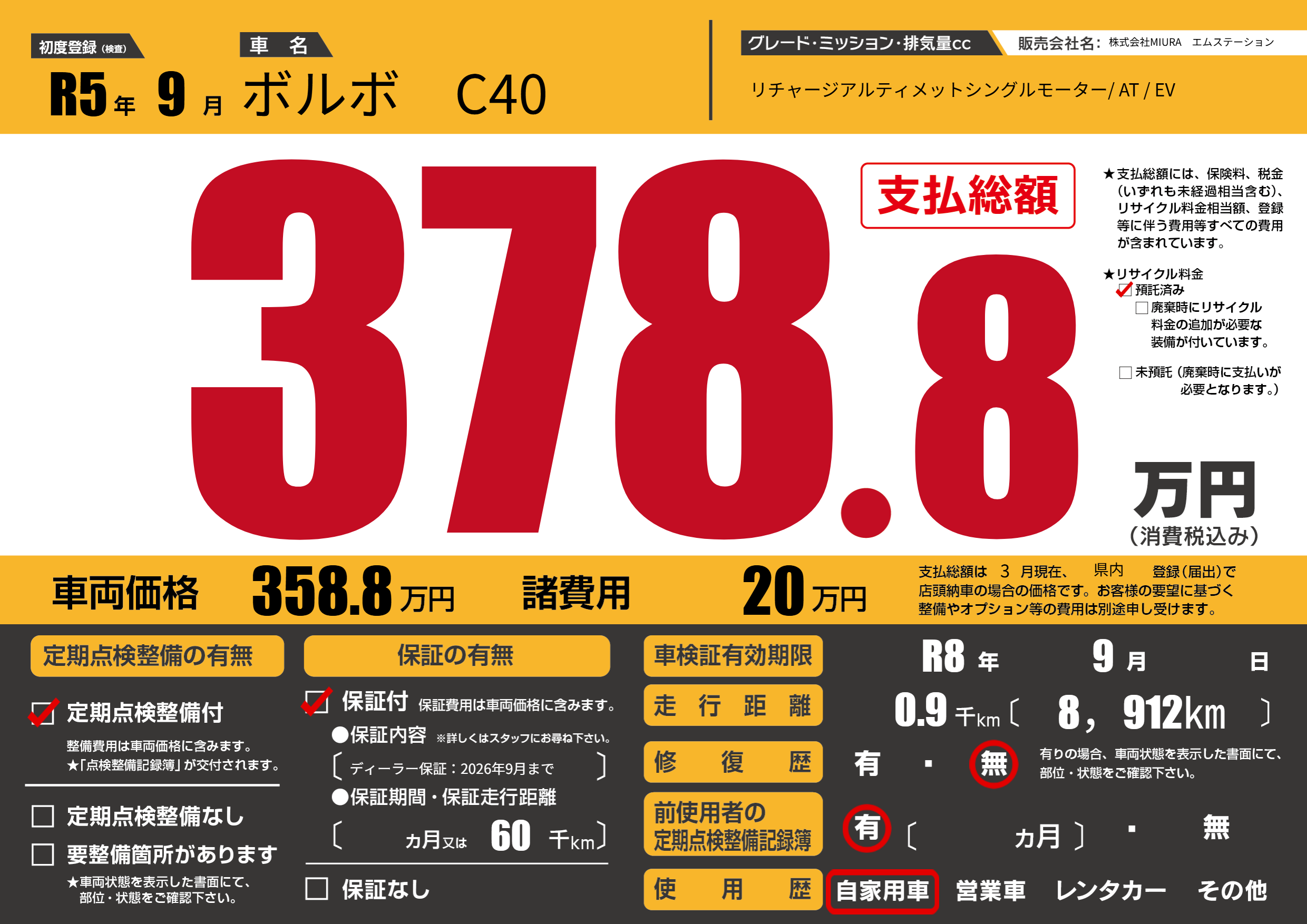 | 車名 | ボルボ C40 | グレード ミッション 排気量 |