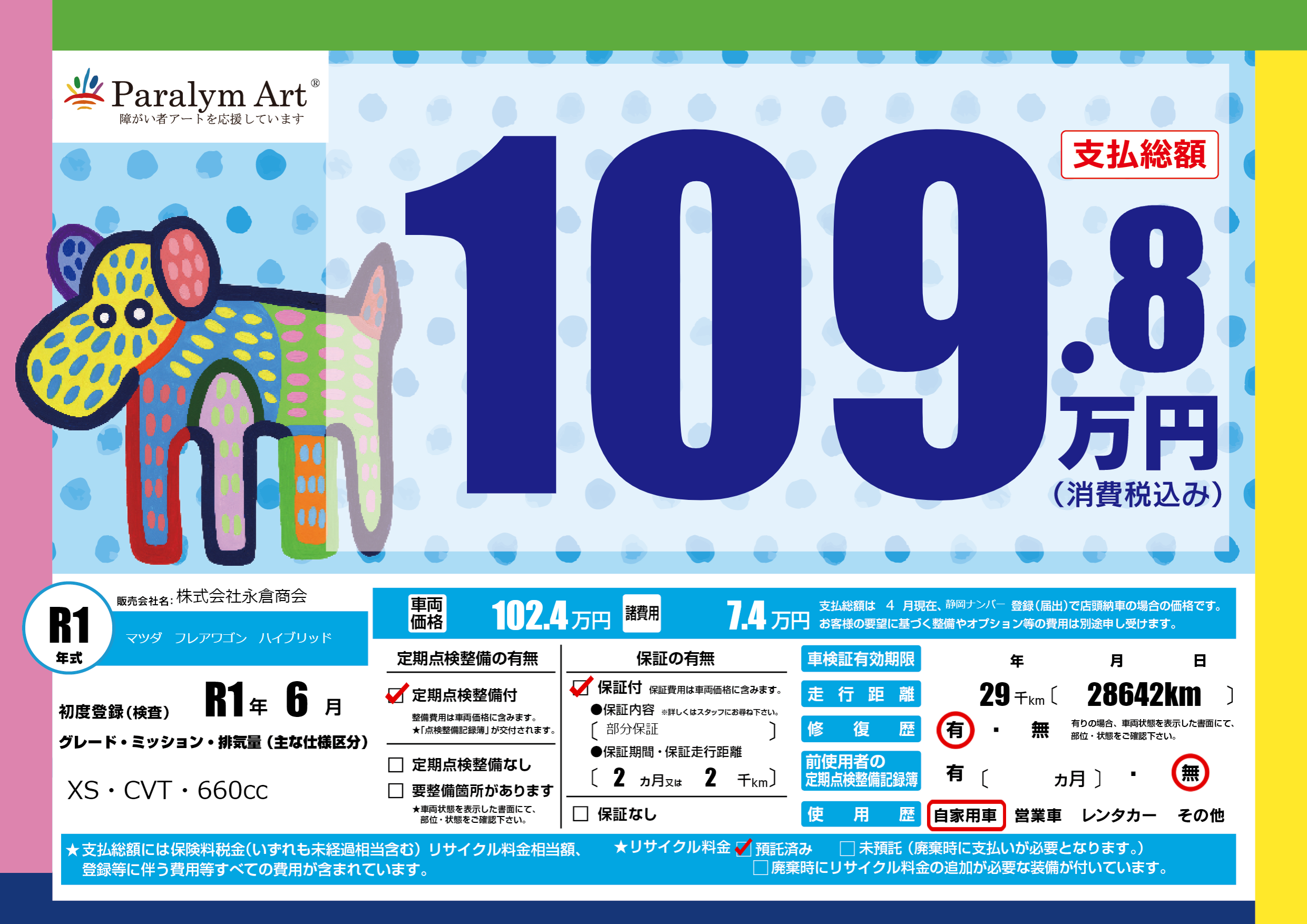 | 車名 | マツダ フレアワゴン ハイブリッド | グレード ミッション 排気量 |
