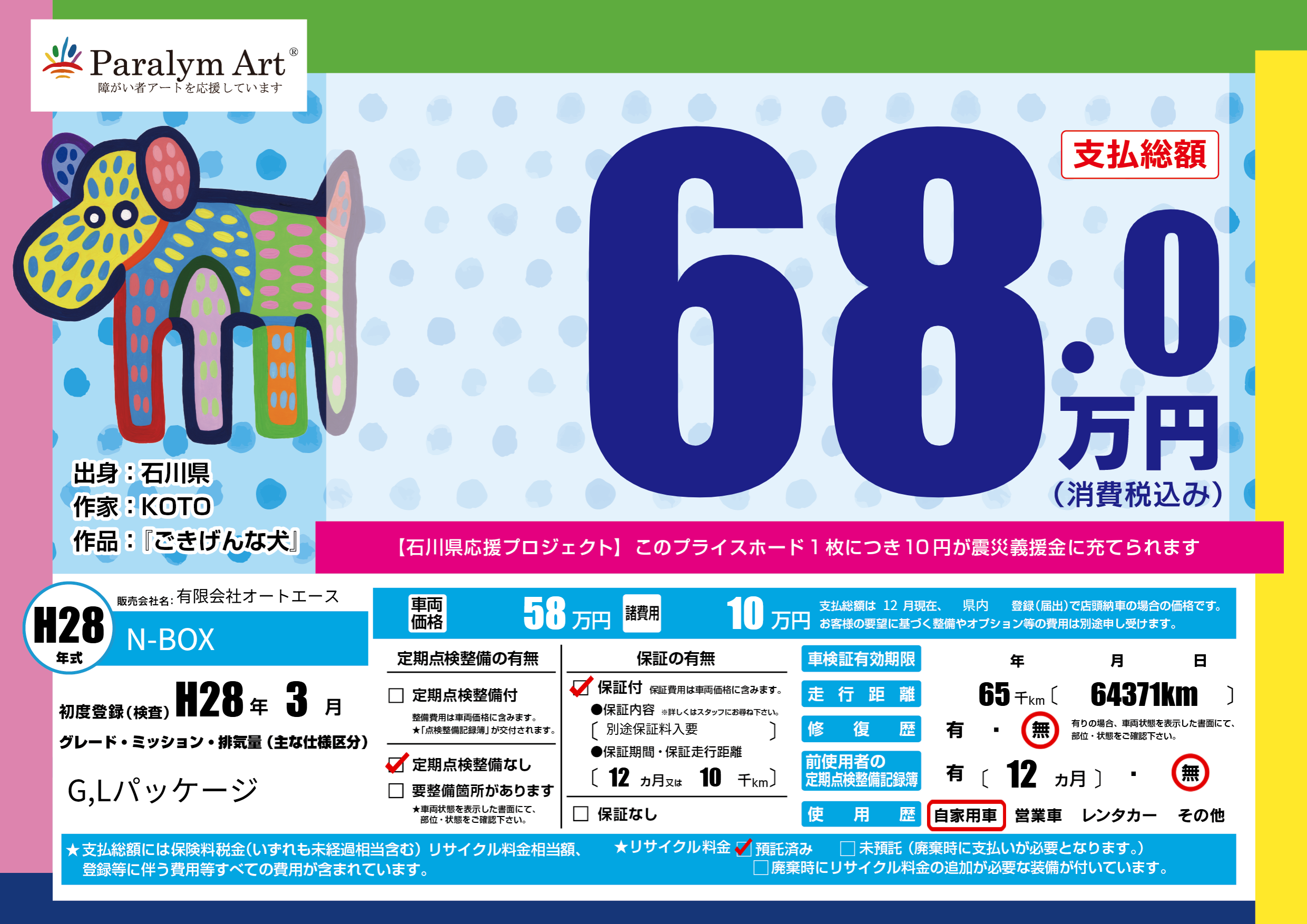 | 走行キロ | 6.5万km | 初年度登録 | H28年3月 |
