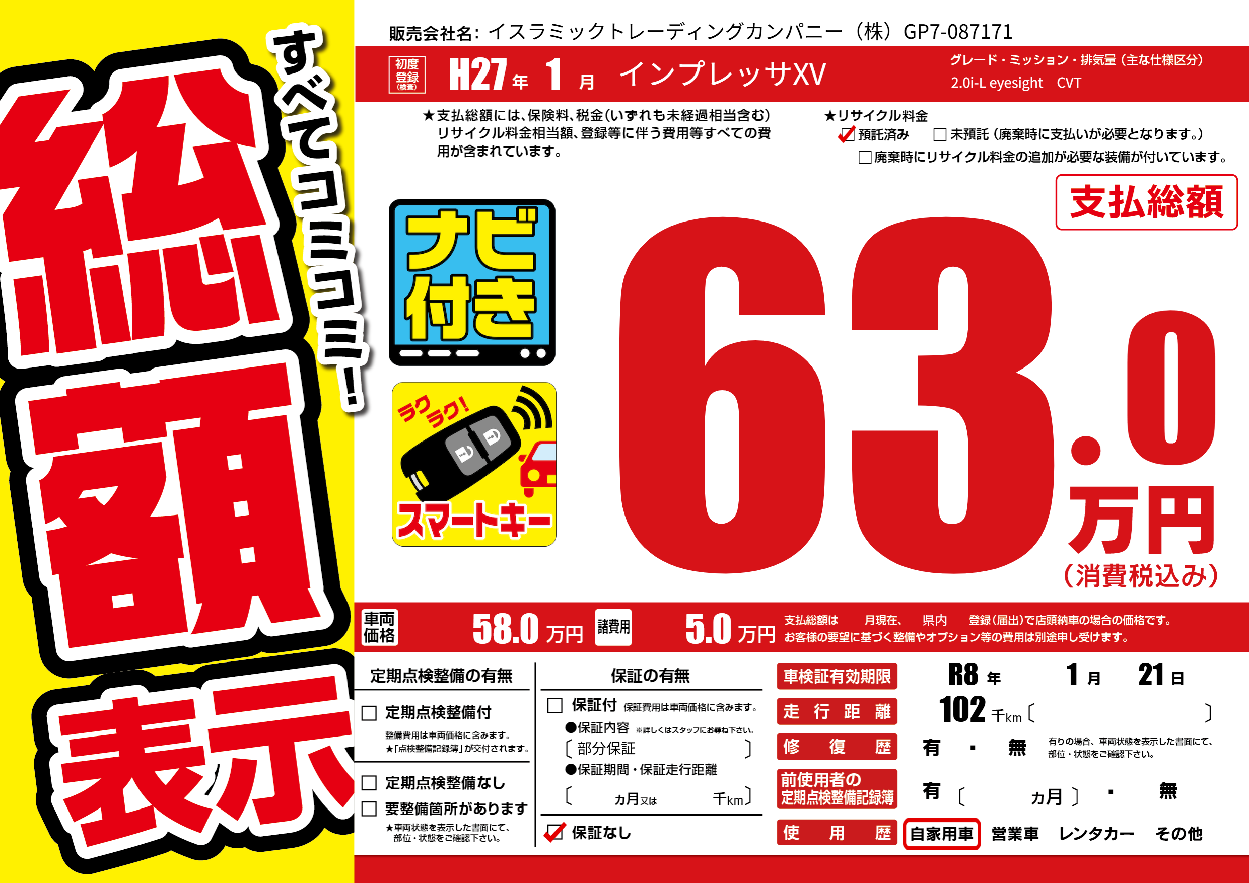 なし | 車検制限 | R8年1月21月 |