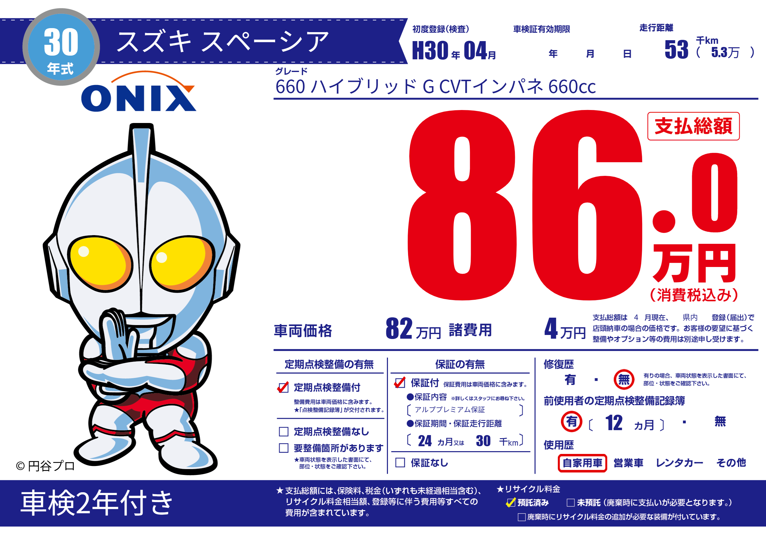 | 走行キロ | 5.3万km | 初年度登録 | H30年04月 |
