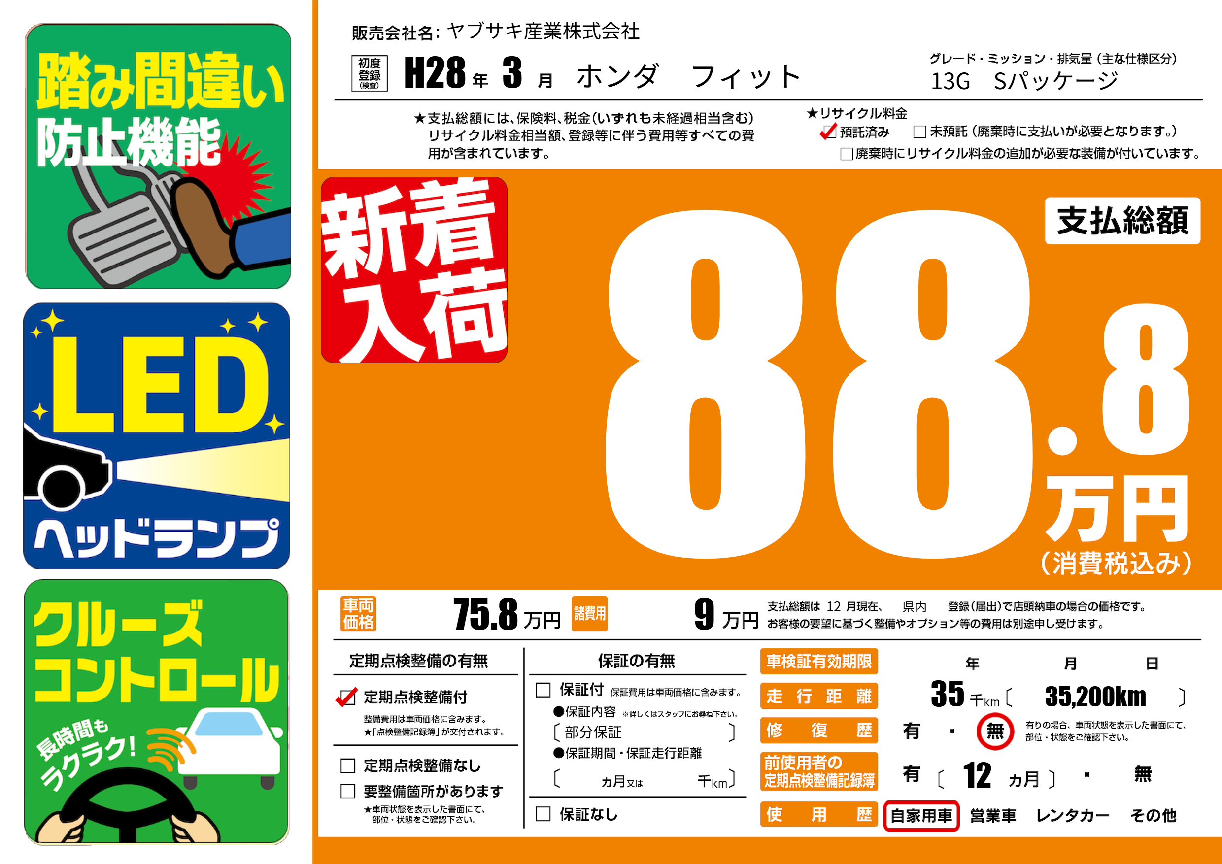 | 走行キロ | 3.5万km | 初年度登録 | H28年3月 |