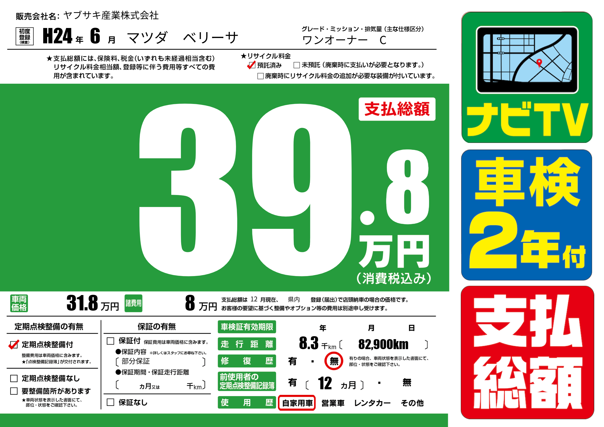 | 車名 | マツダ ベリーサ | グレード ミッション 排気量 |
