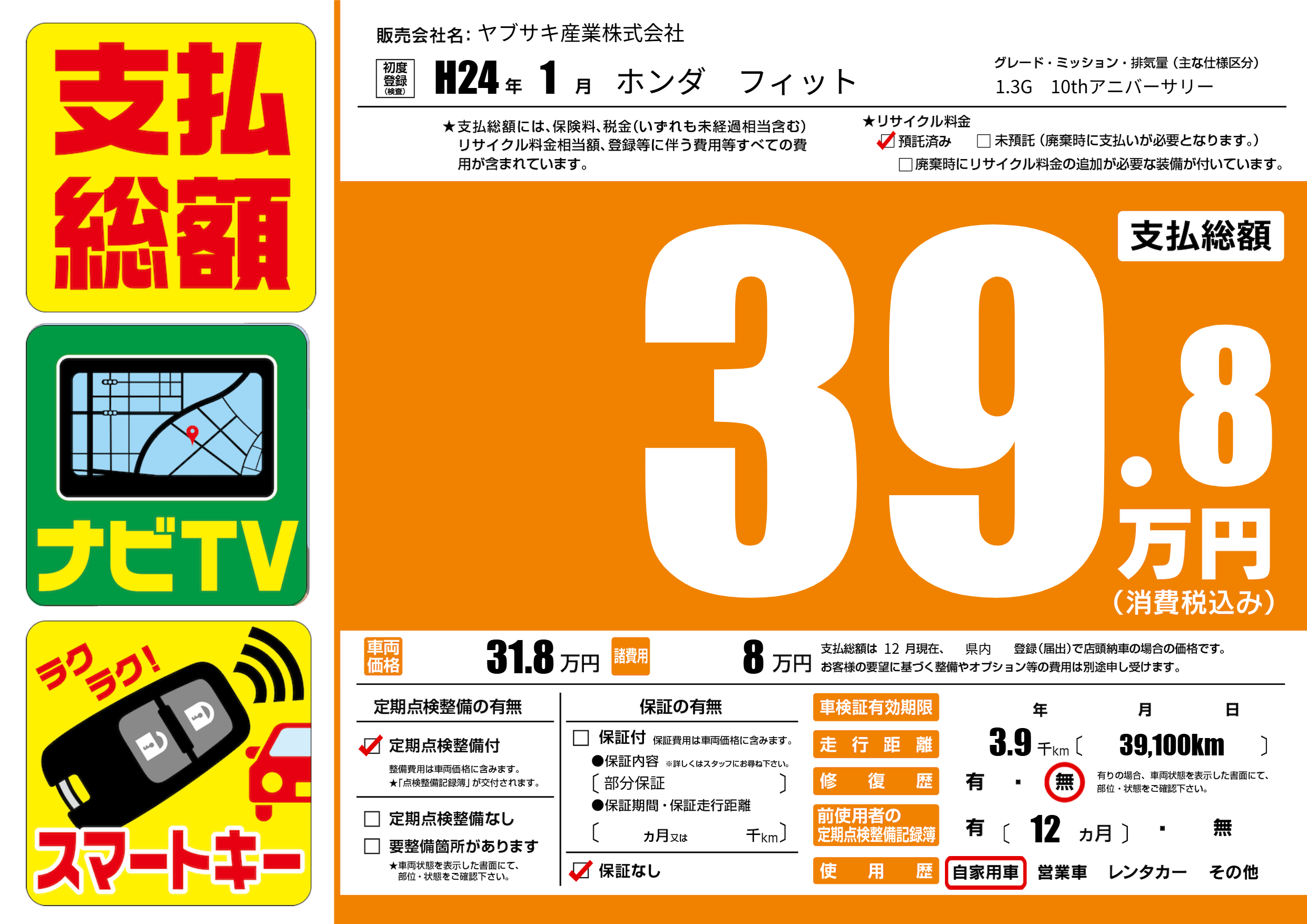 | 走行キロ | 0.3万km | 初年度登録 | H24年1月 |