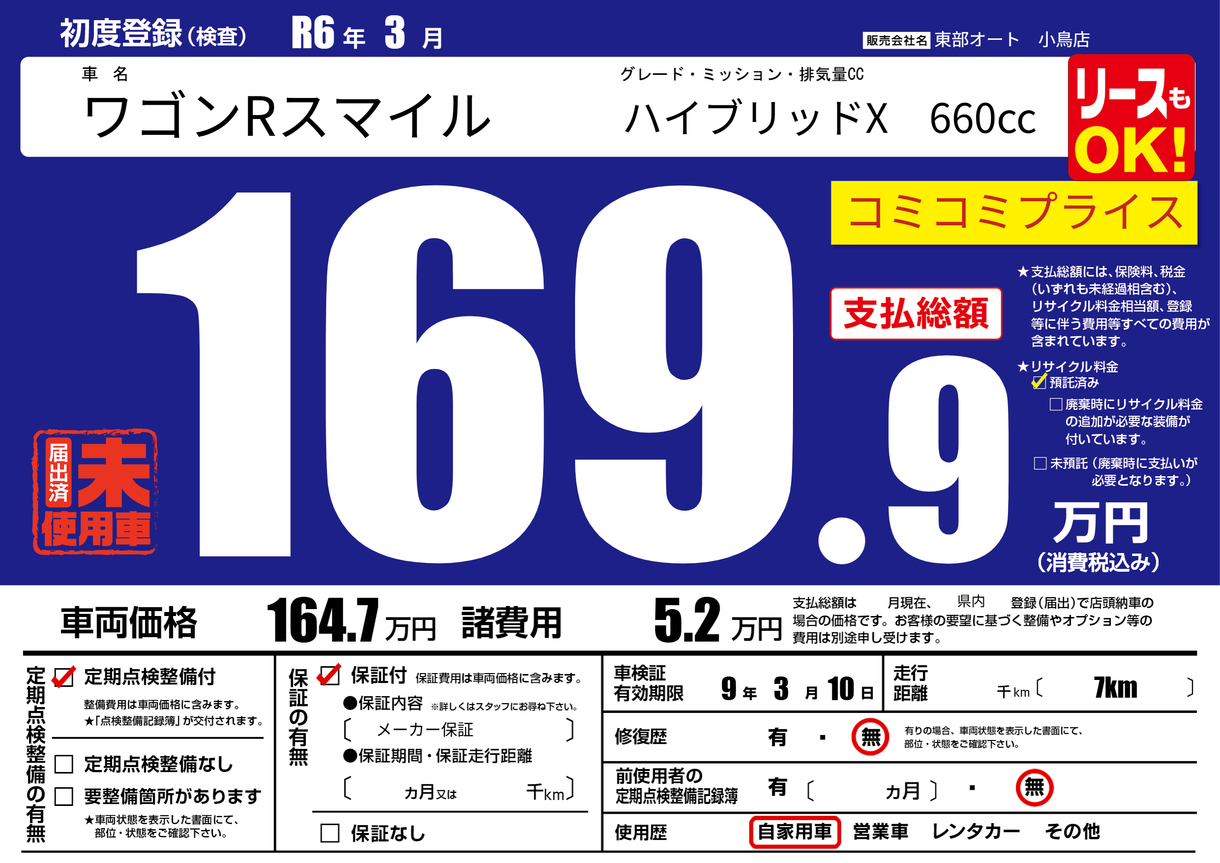 | 定期点検整備 | 定期点検整備あり | ||