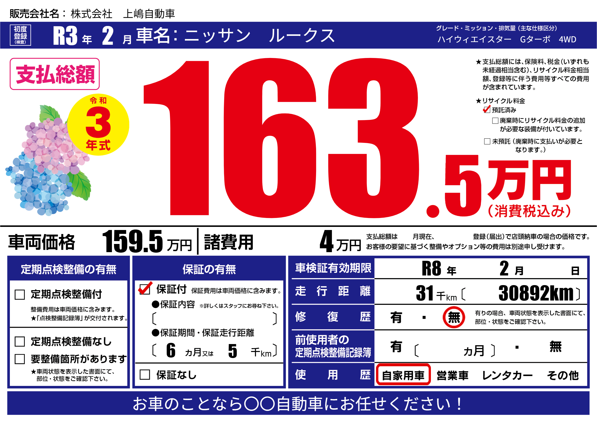 保証付き 保証内容(---) 6ヶ月または(5)千kmまで |