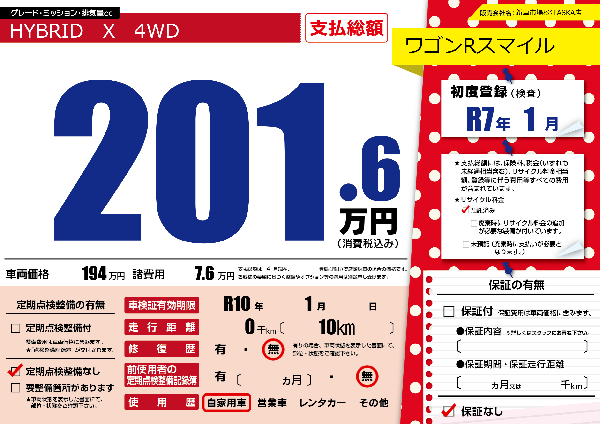 | 車名 | ワゴンRスマイル | グレード ミッション 排気量 |