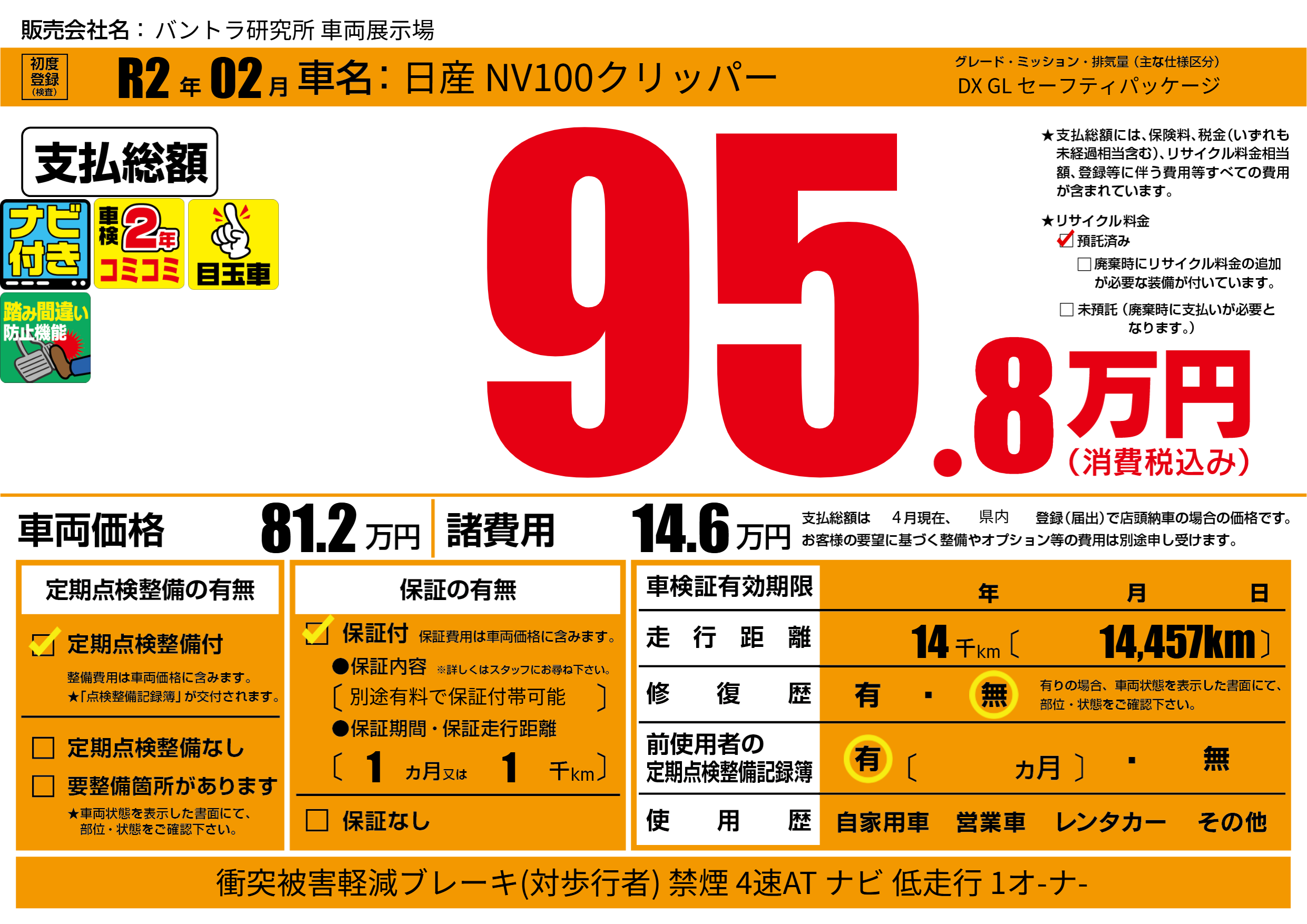 | 車名 | 日産 NV100クリッパー | グレード ミッション 排気量 |