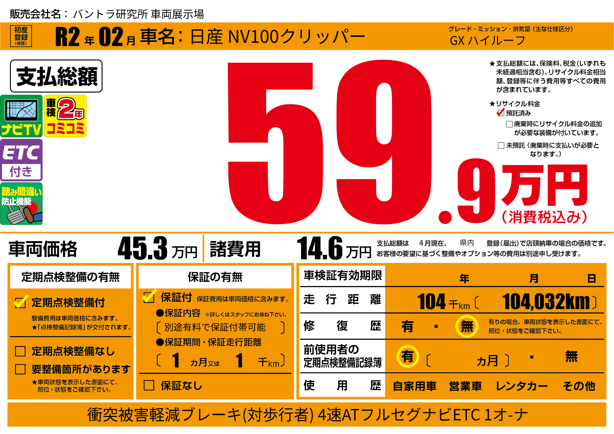 | 定期点検整備 | 定期点検整備あり | ||