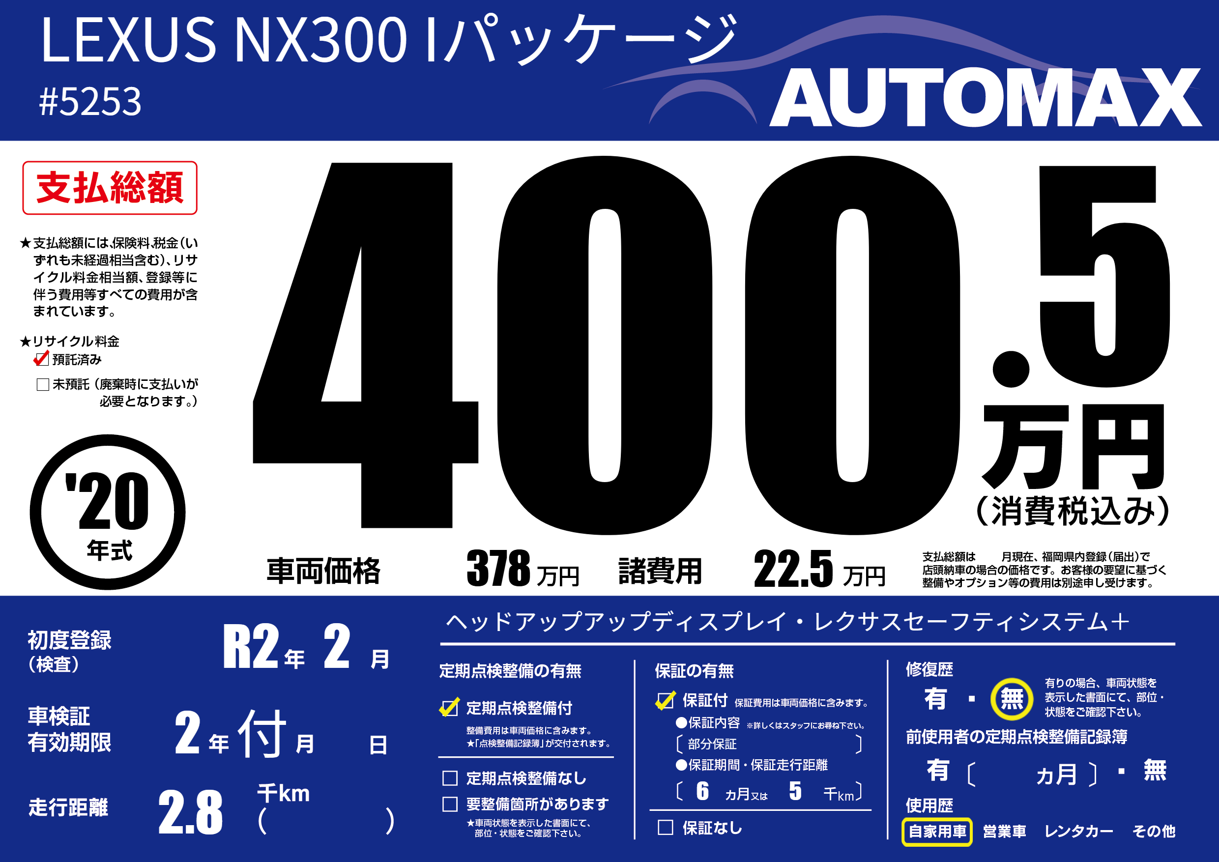 | 定期点検整備 | 定期点検整備あり | ||