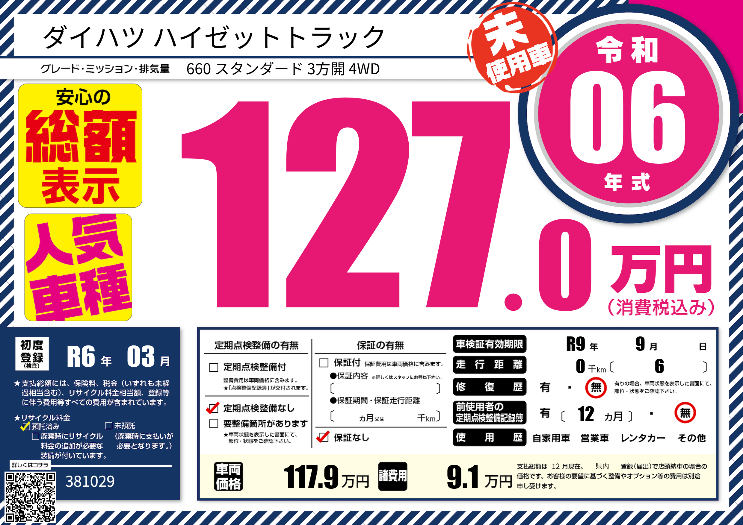| 走行キロ | - | 初年度登録 | R6年03月 |