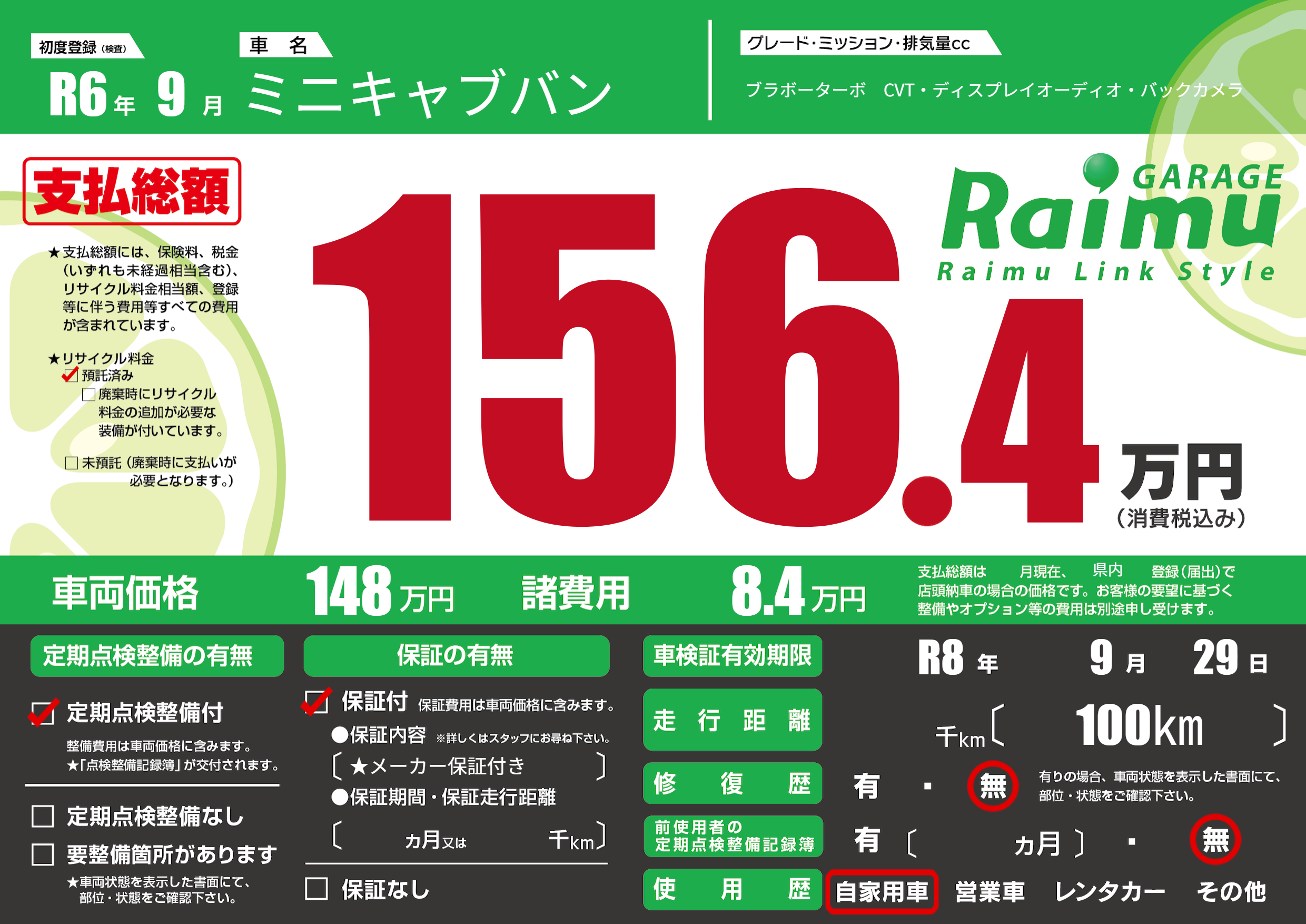 なし | 車検制限 | R8年9月29月 |
