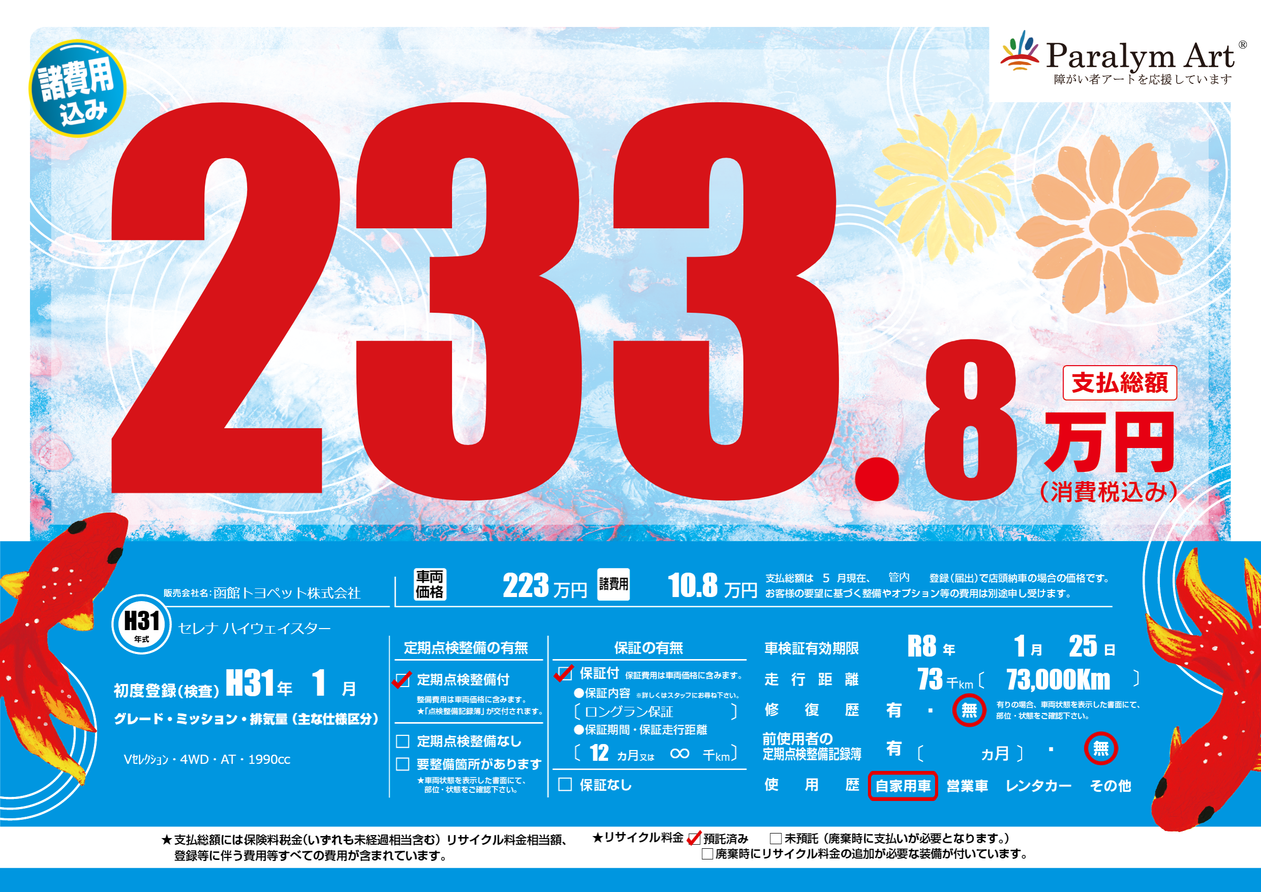 | 走行キロ | 7.3万km | 初年度登録 | H31年1月 |