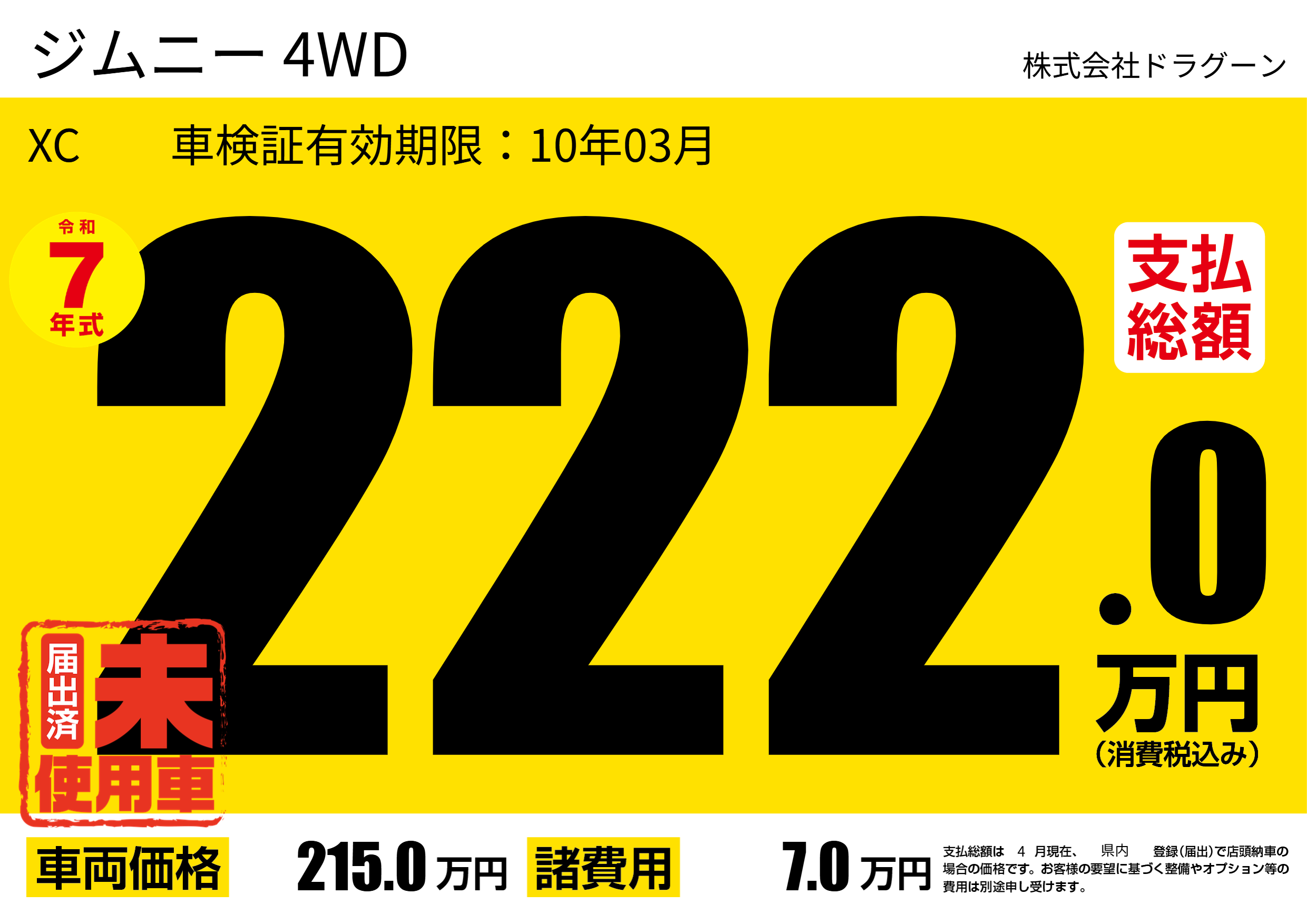 | 車名 | ジムニー 4WD | グレード ミッション 排気量 |