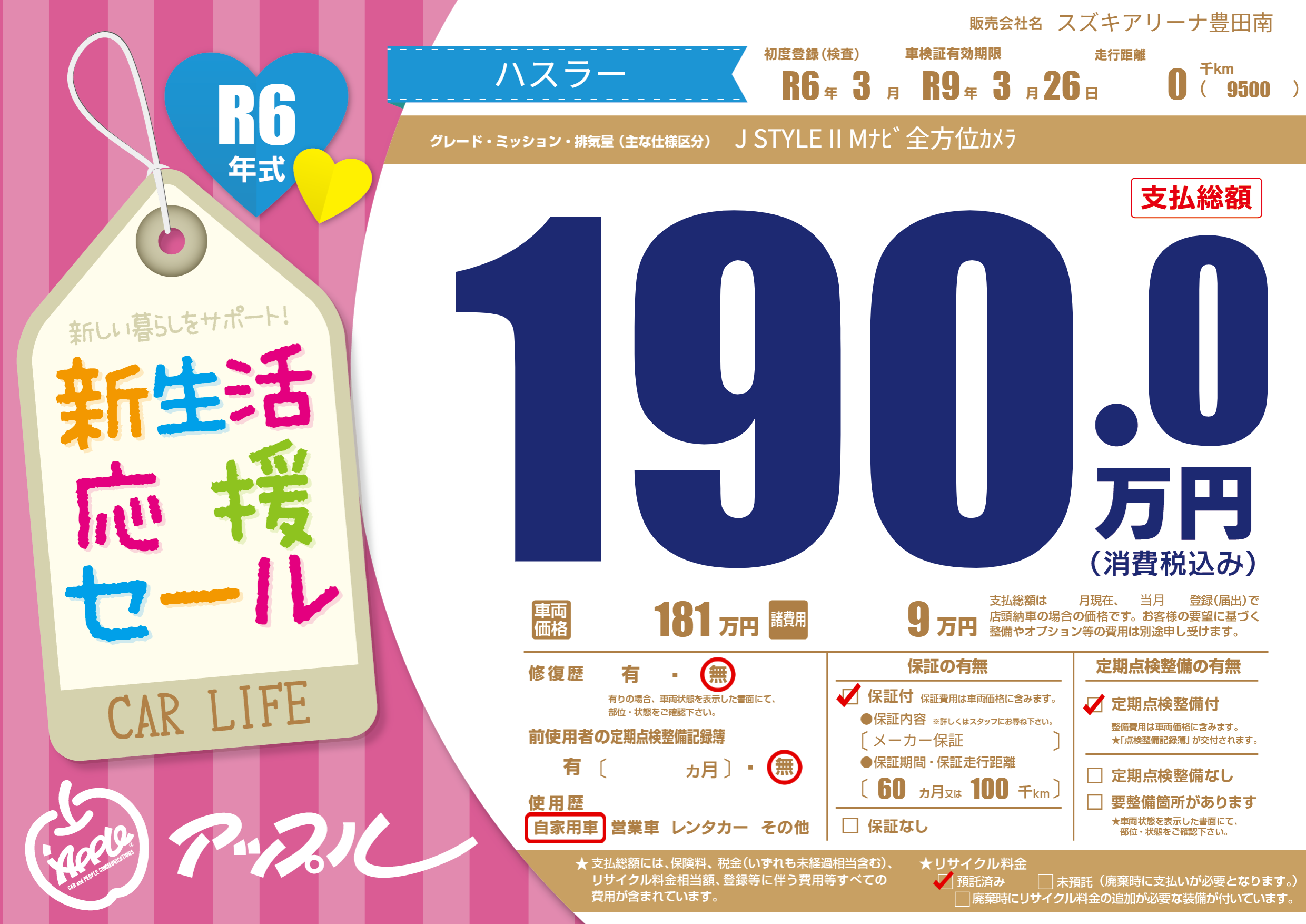 | 車名 | ハスラー | グレード ミッション 排気量 |