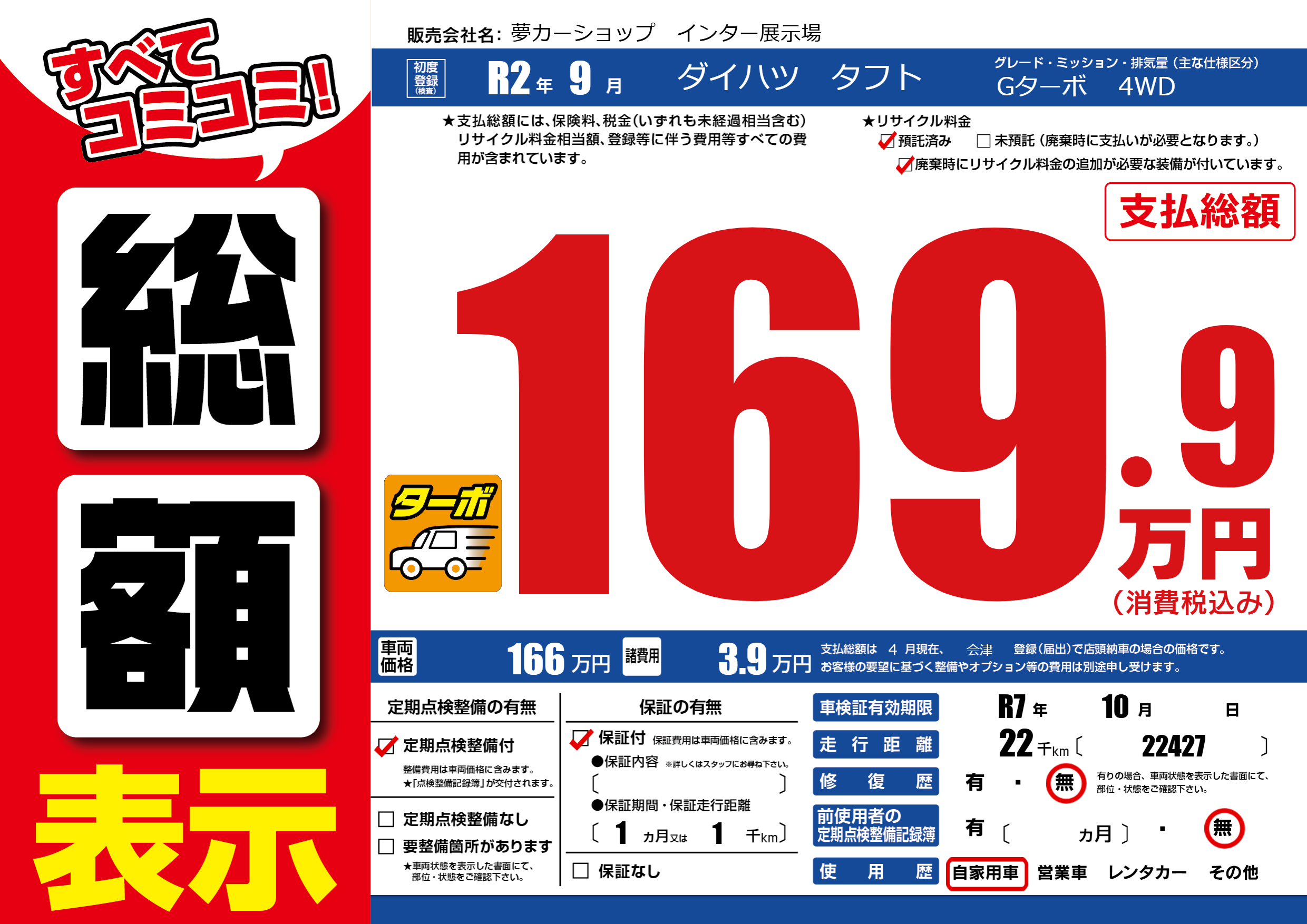 なし | 車検制限 | R7年10月---月 |