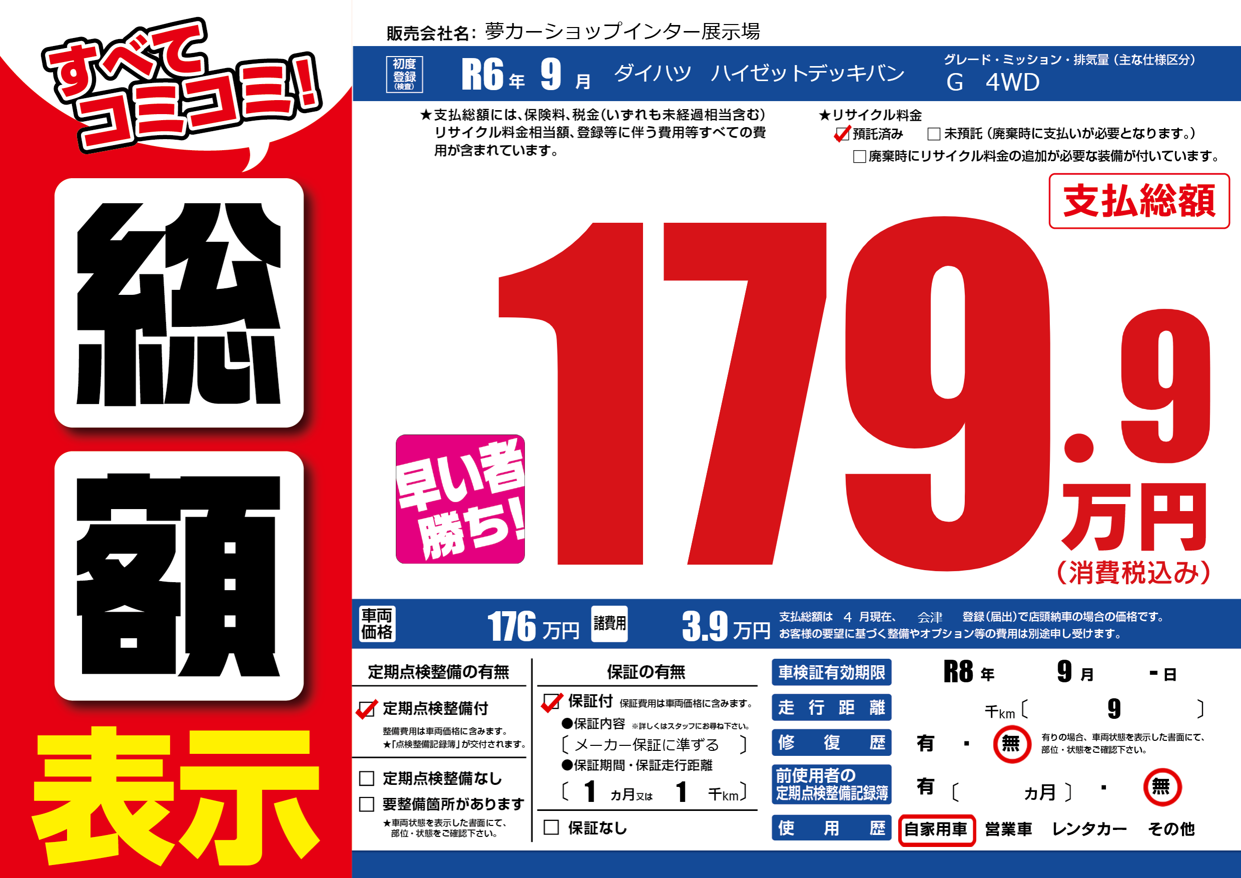 | 車検制限 | R8年 9月 -日 | ||