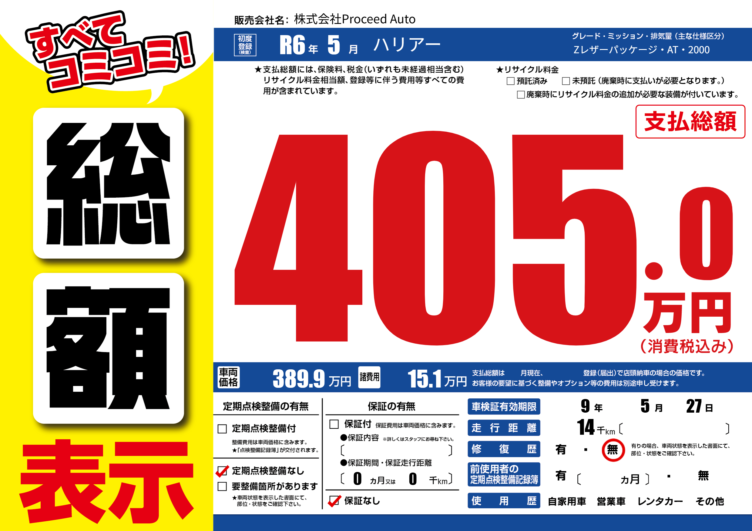 | 走行キロ | 1.4万km | 初年度登録 | R6年5月 |