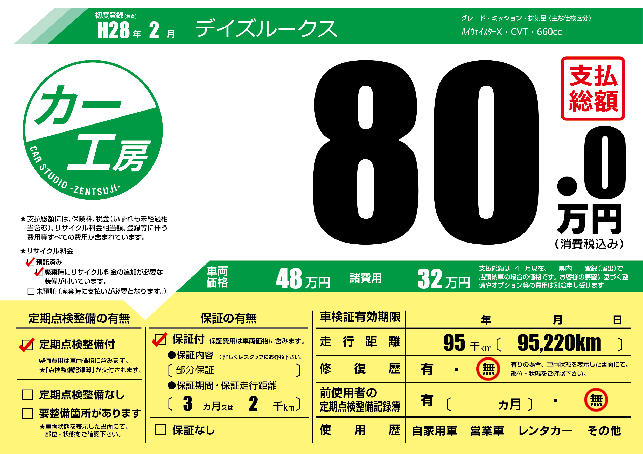 | 定期点検整備 | 定期点検整備あり | ||