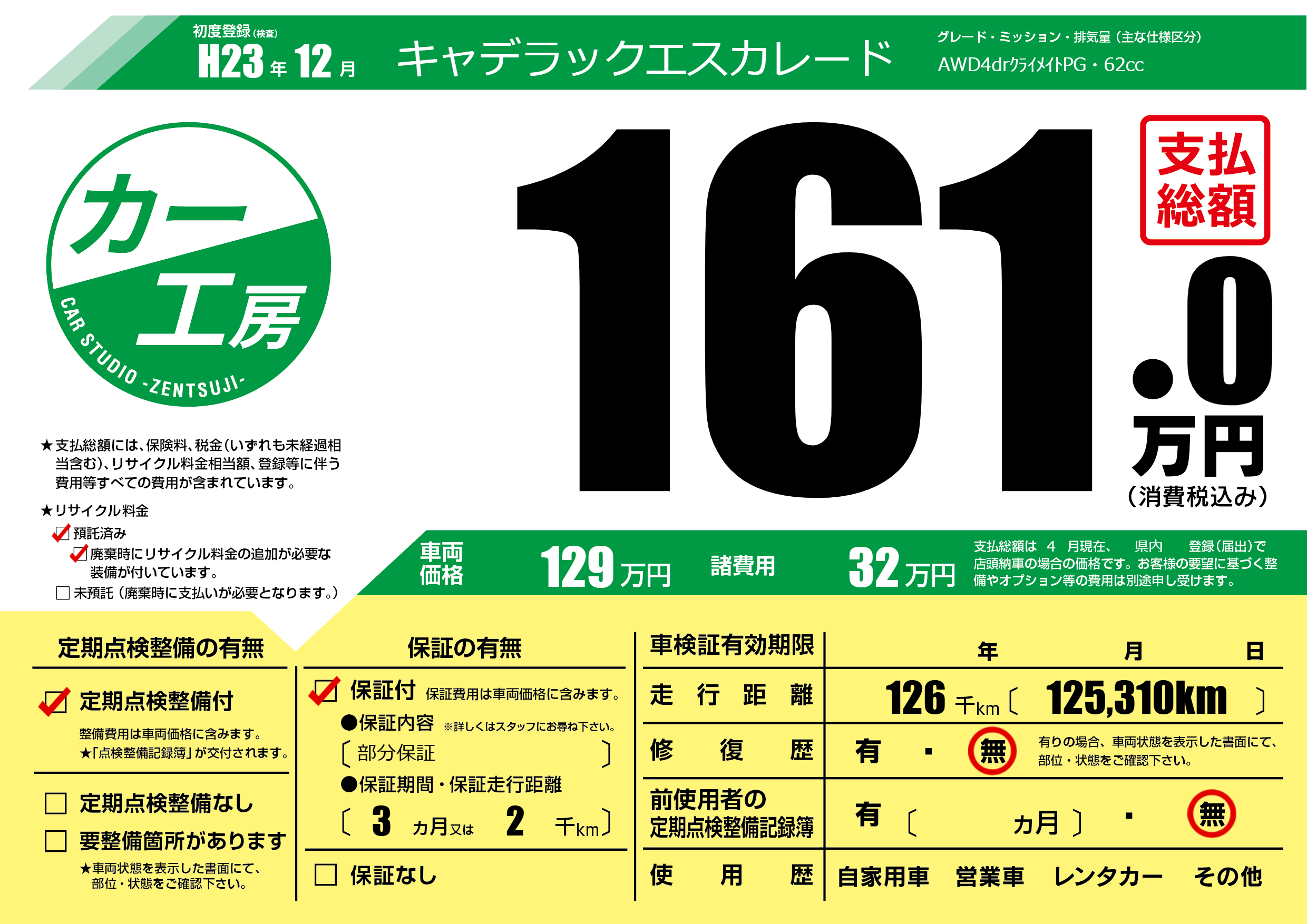 | 走行キロ | 12.6万km | 初年度登録 | H23年12月 |
