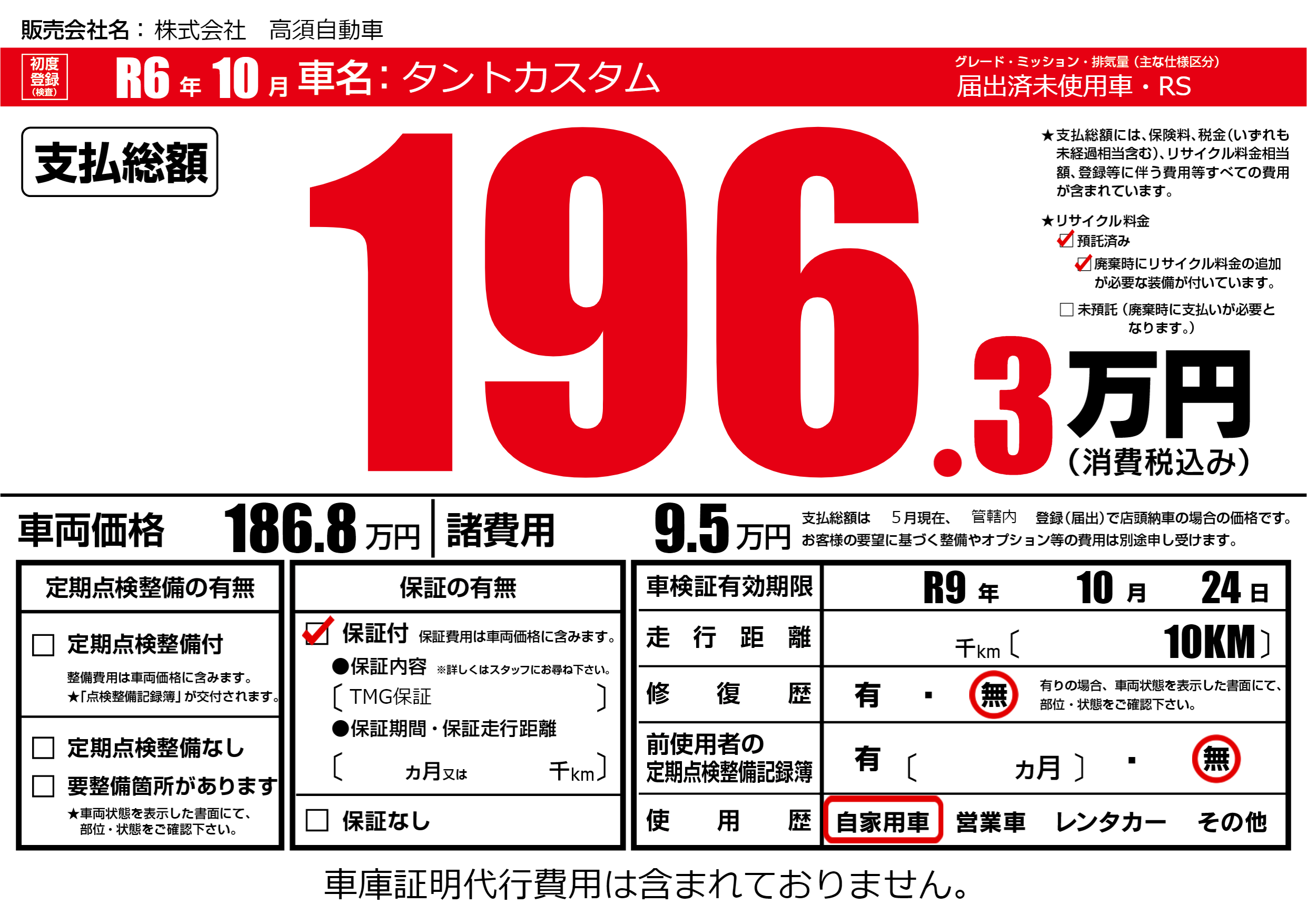 | 走行キロ | - | 初年度登録 | R6年10月 |