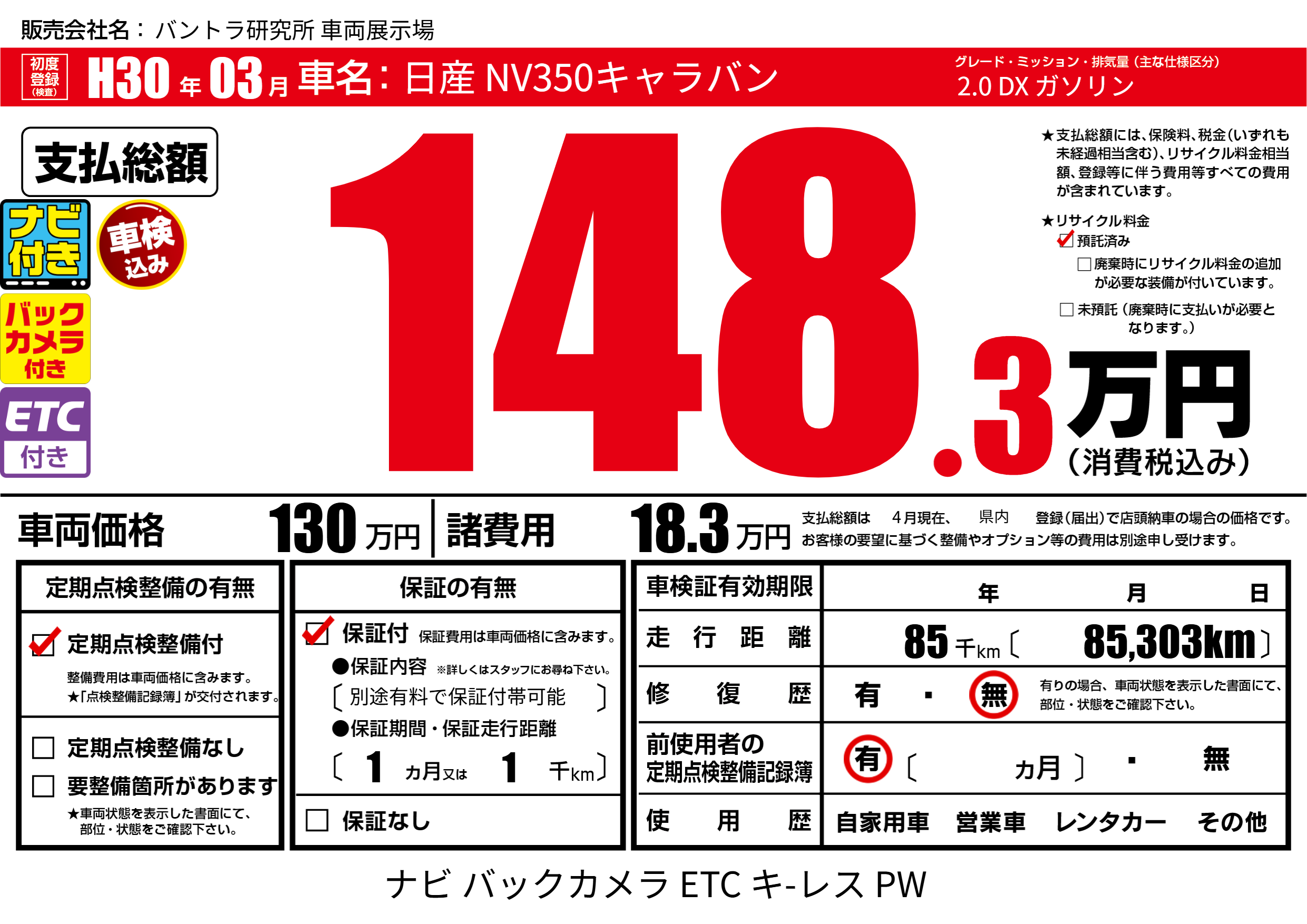| 車検制限 | - 年 - 月 - 日 | ||