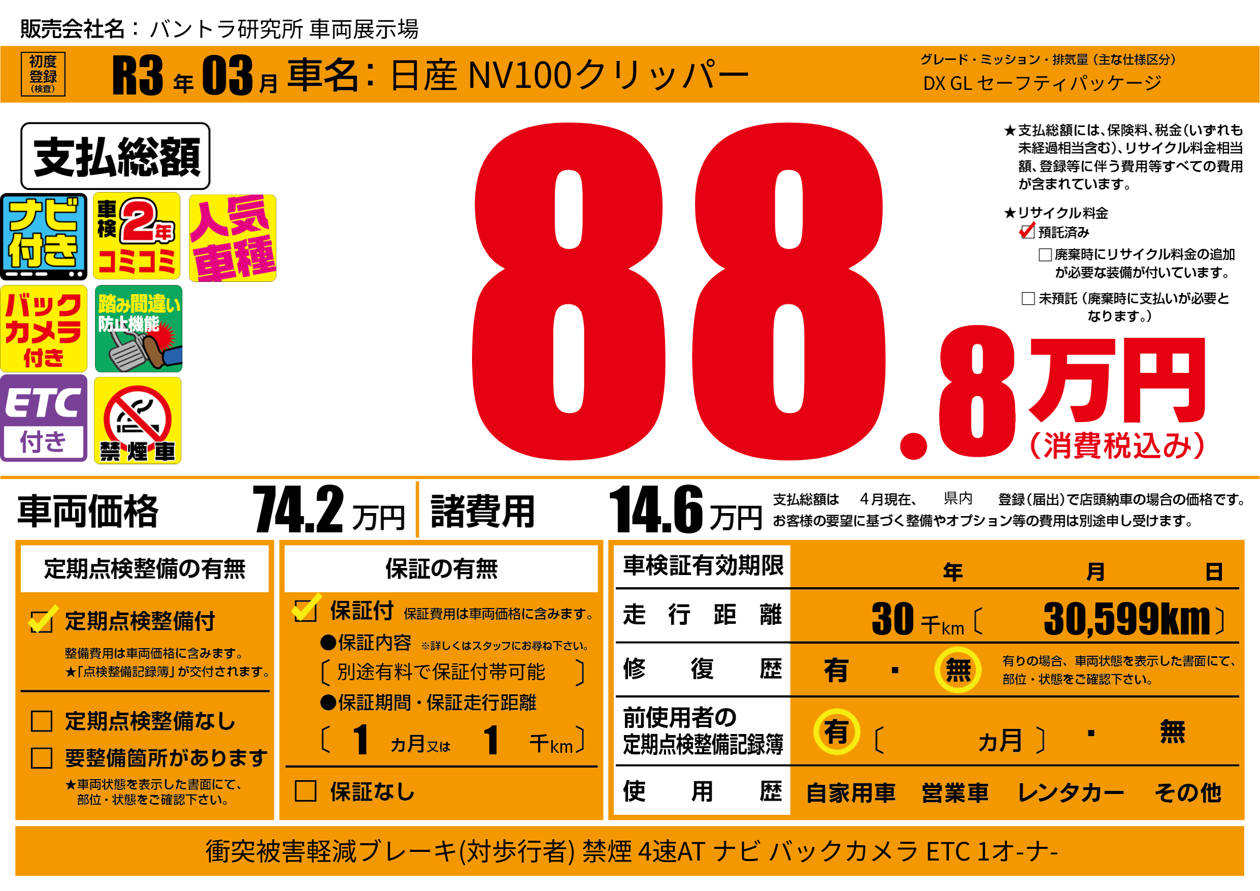 | 走行キロ | 3万km | ||