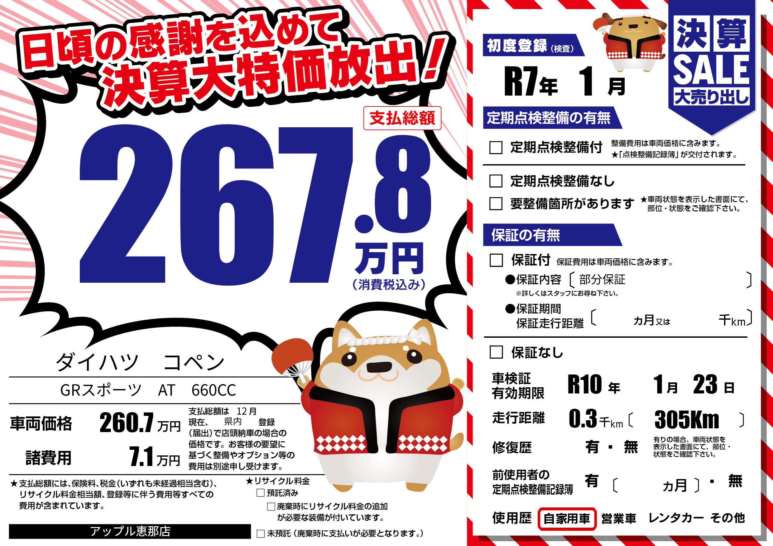 | 車検制限 | R10年 1月 23日 | ||