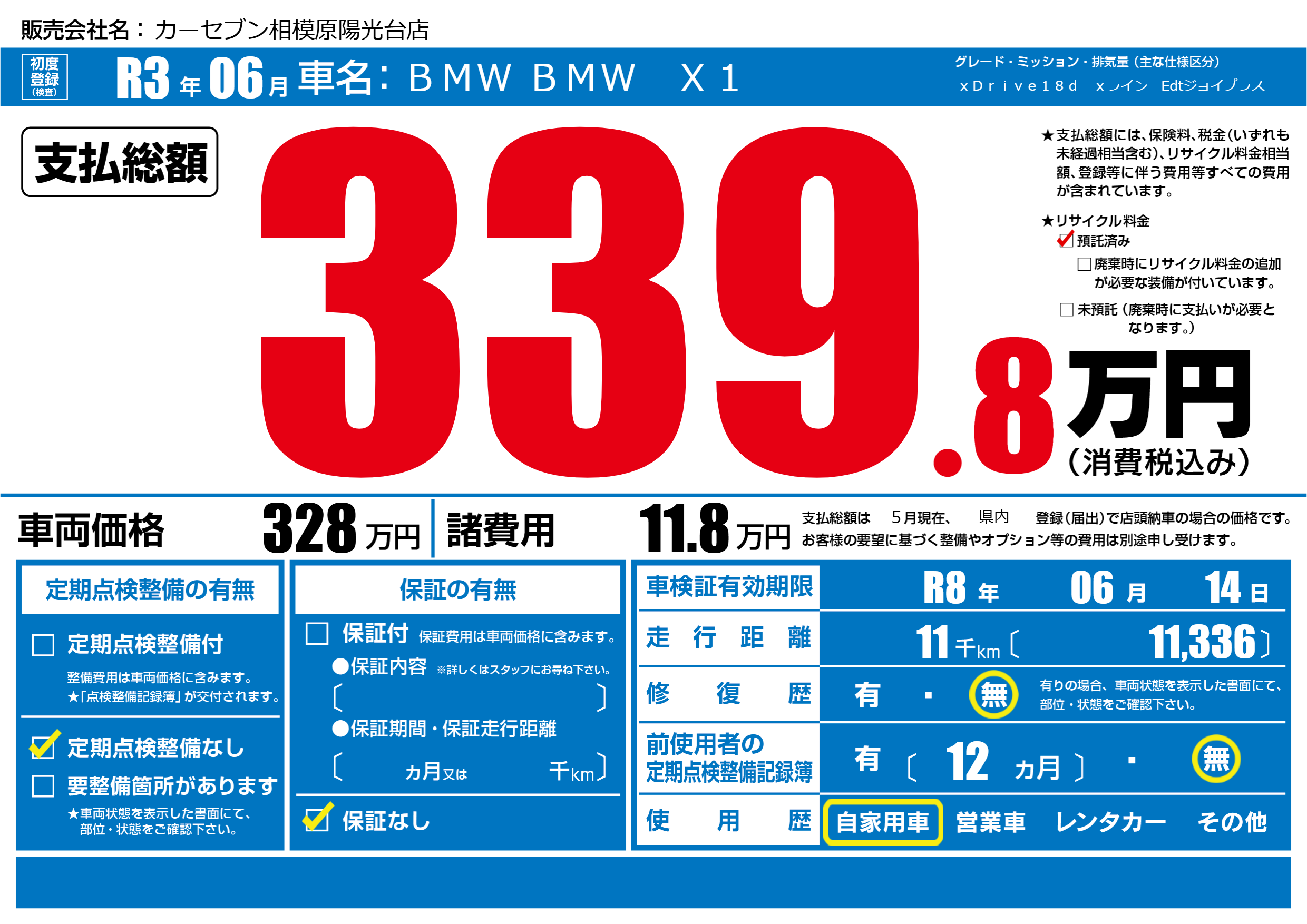 | 走行キロ | 1.1万km | 初年度登録 | R3年06月 |