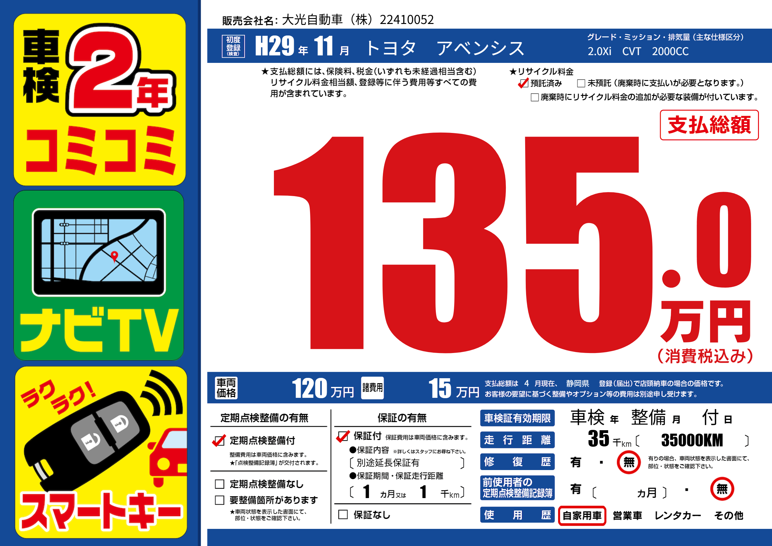 | 走行キロ | 3.5万km | 初年度登録 | H29年11月 |