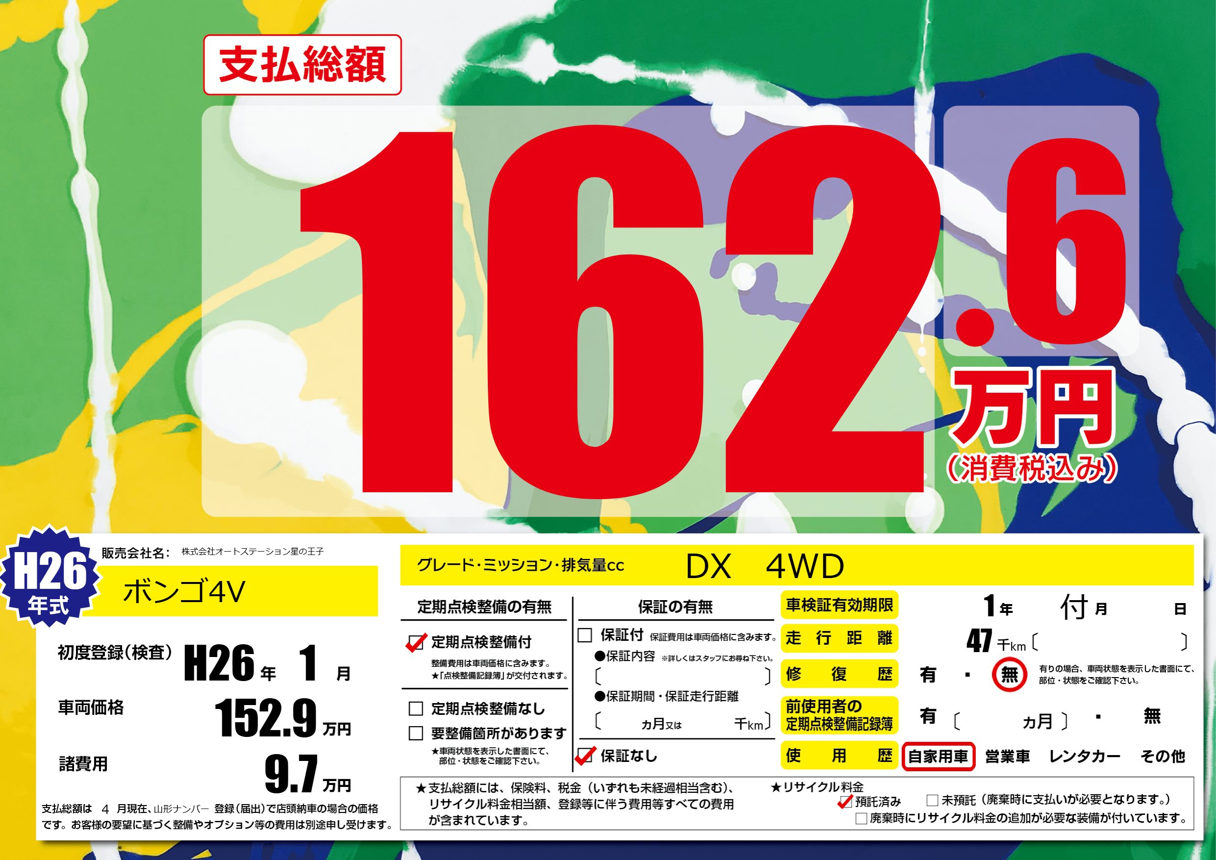 | 車名 | ボンゴ4V | グレード ミッション 排気量 |