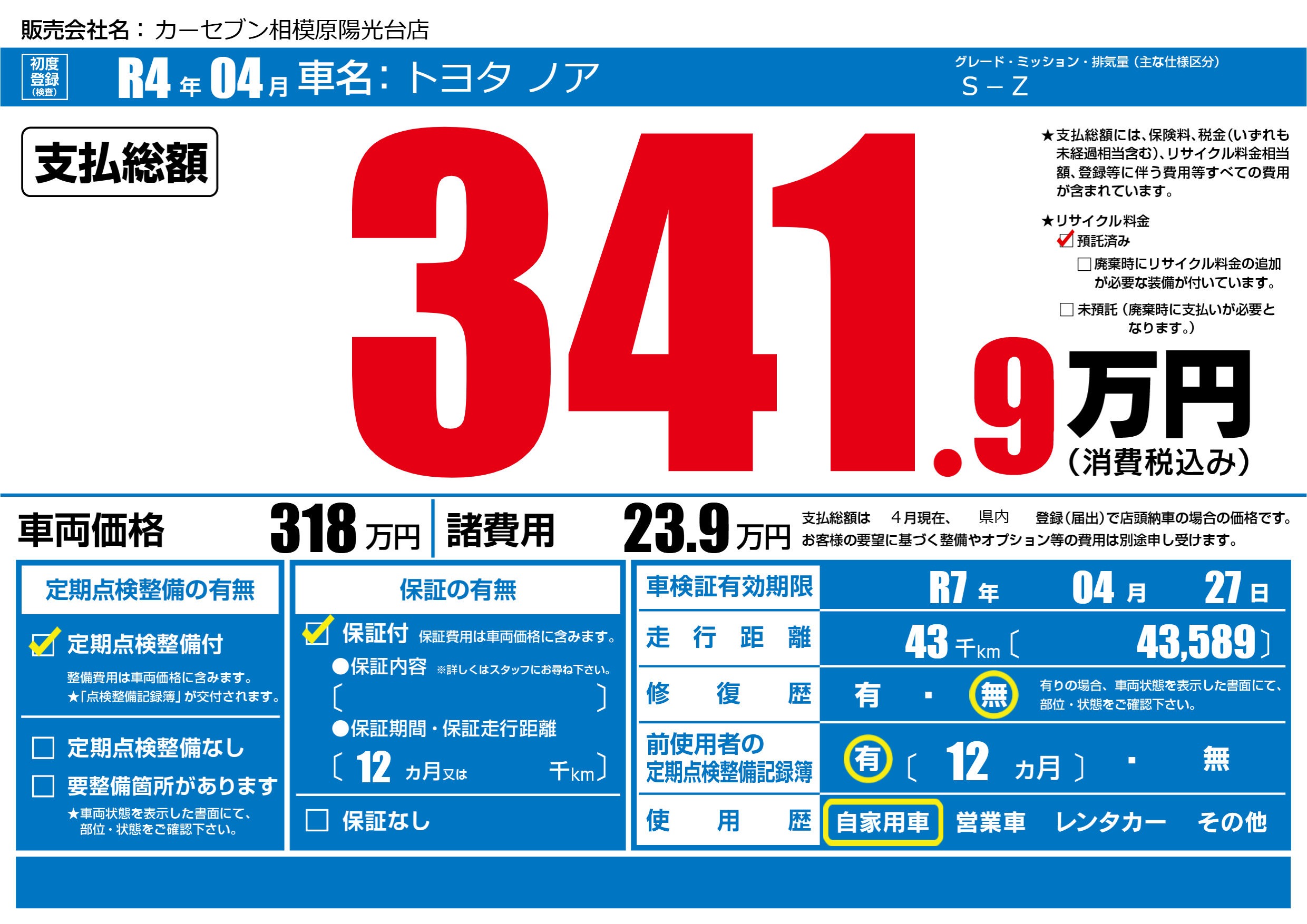 | 車検制限 | R7年 04月 27日 | ||