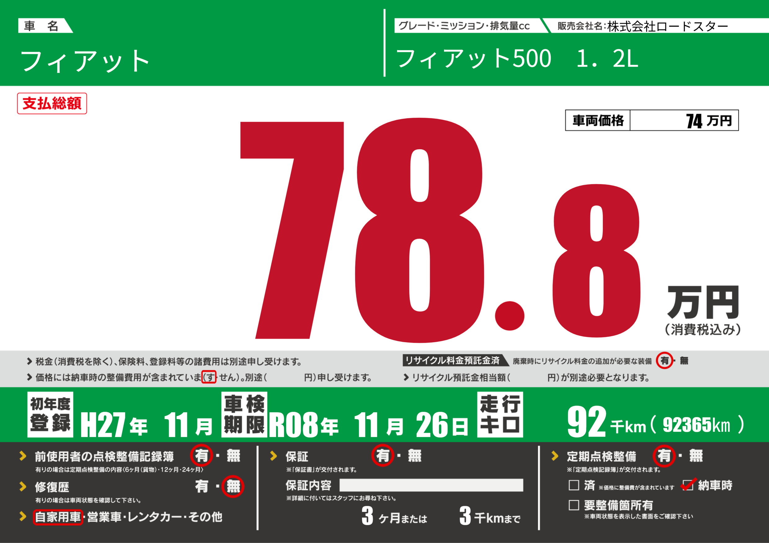保証付き 保証内容(---) 3ヶ月または(3)千kmまで |