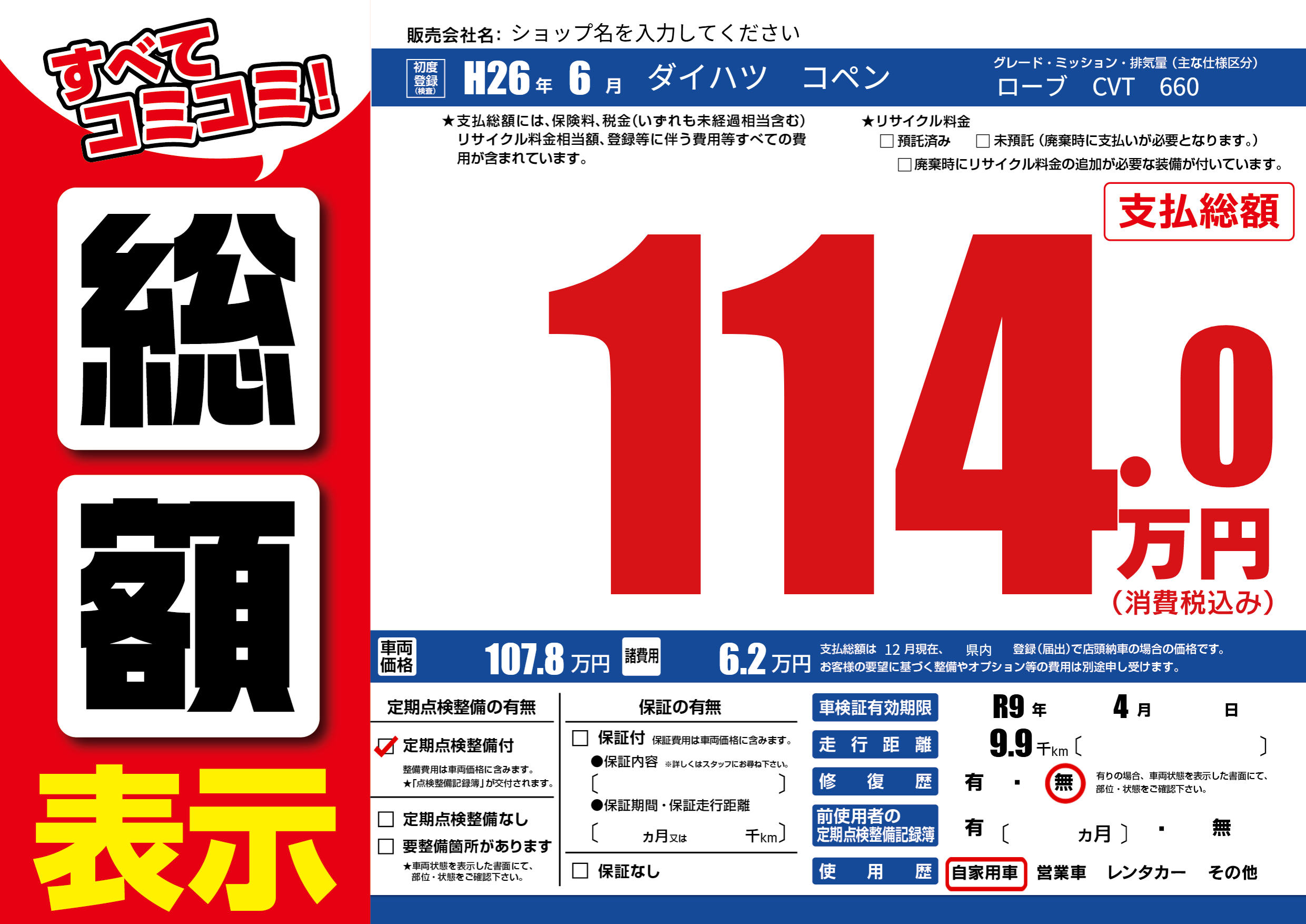 | 車名 | ダイハツ コペン | グレード ミッション 排気量 |