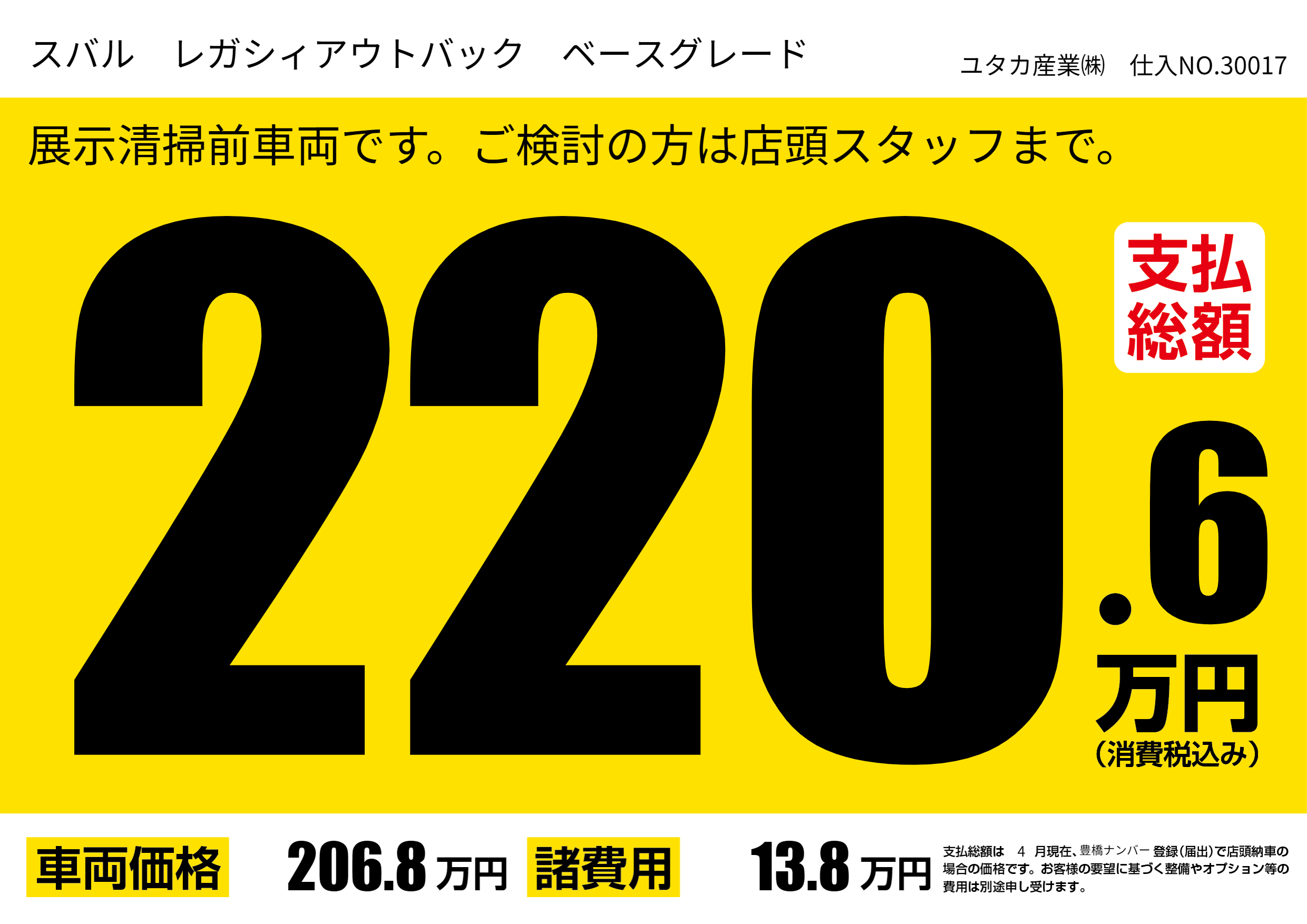 | 車名 | スバル レガシィアウトバック ベースグレード | グレード ミッション 排気量 |