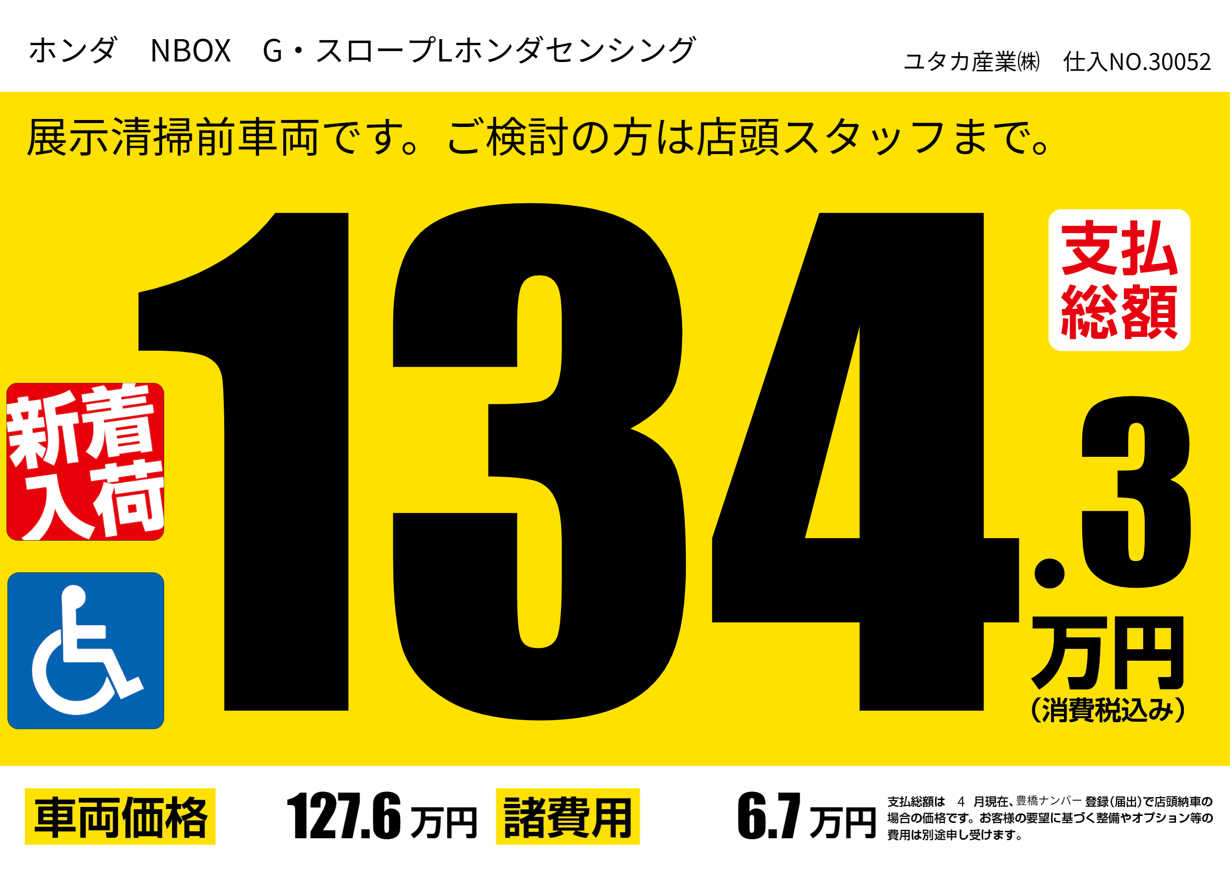 | 車名 | ホンダ NBOX G・スロープLホンダセンシング | グレード ミッション 排気量 |