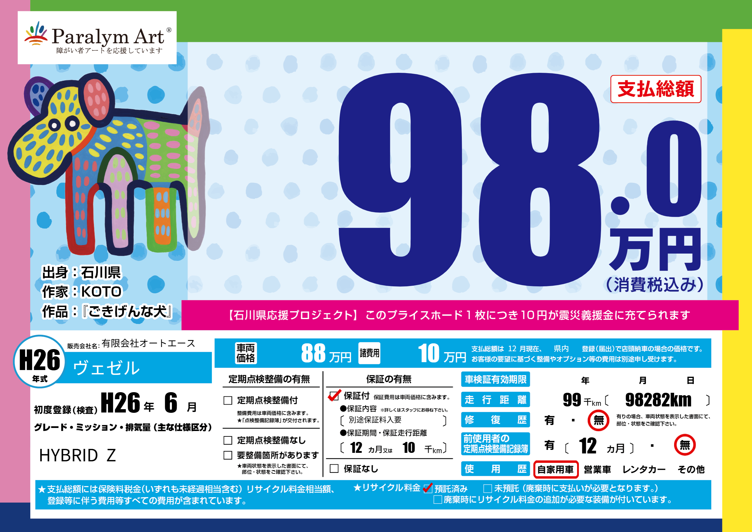 | 走行キロ | 9.9万km | 初年度登録 | H26年6月 |