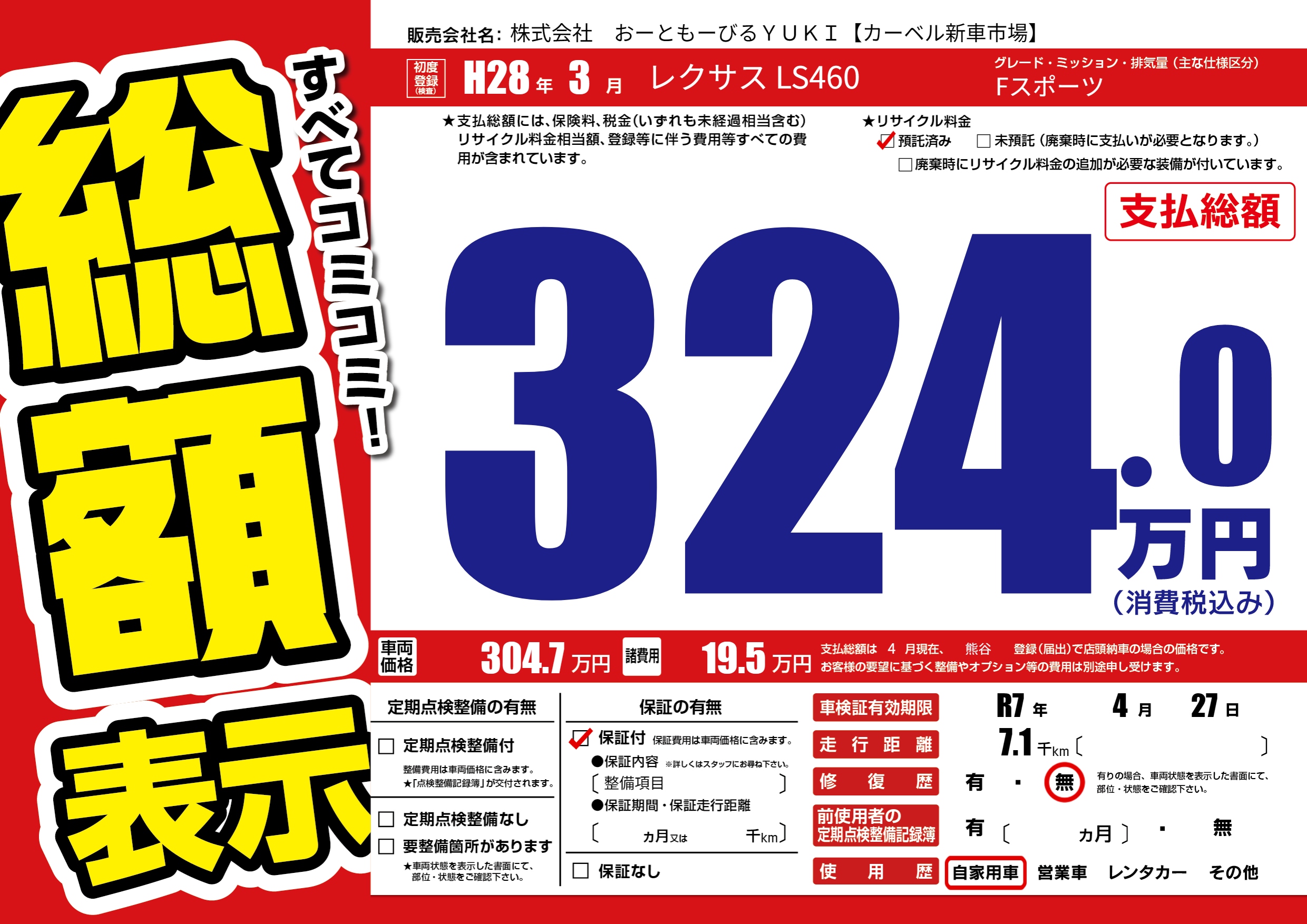 車検制限 R7年 4月 27日