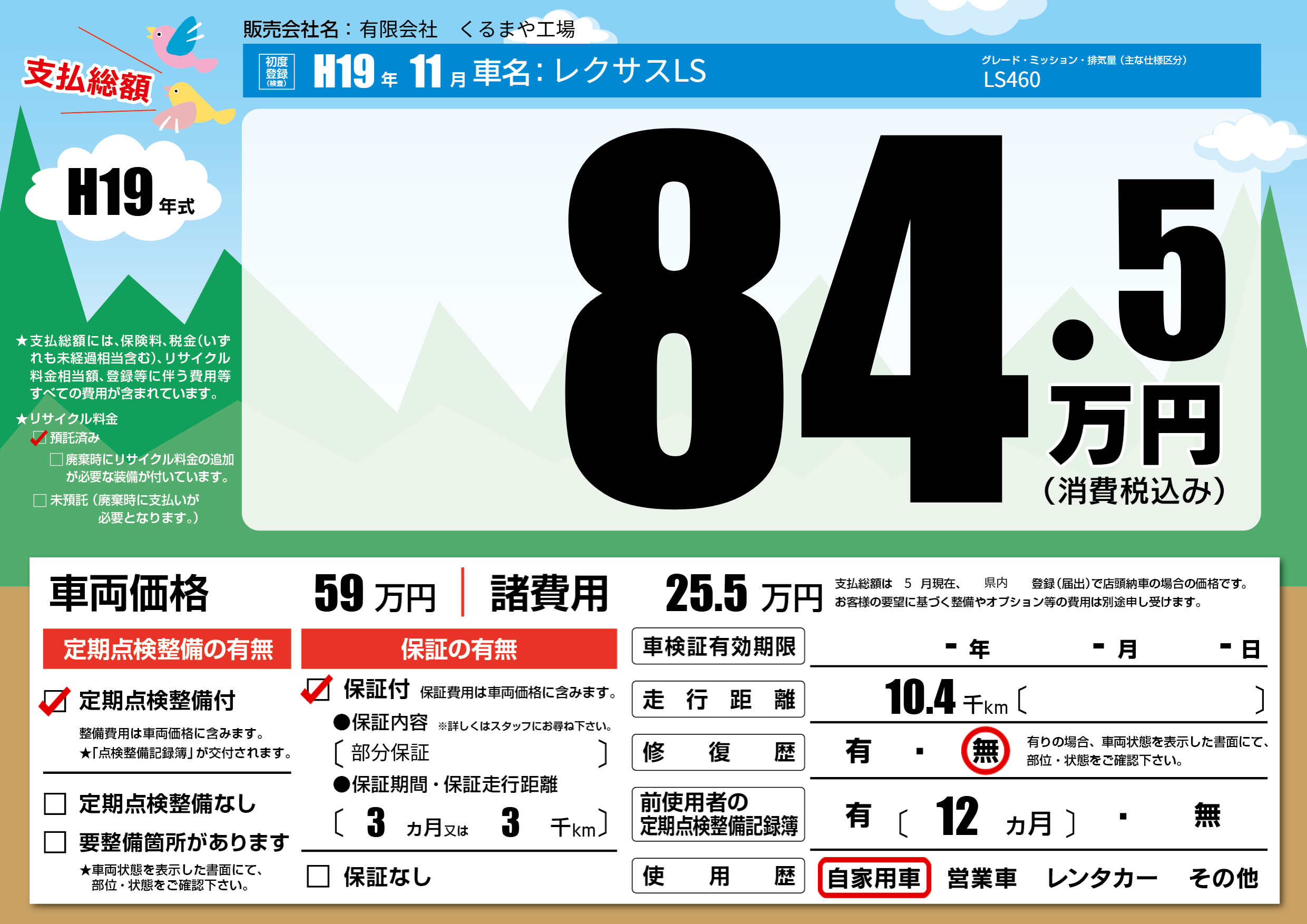 | 車名 | レクサスLS | グレード ミッション 排気量 |
